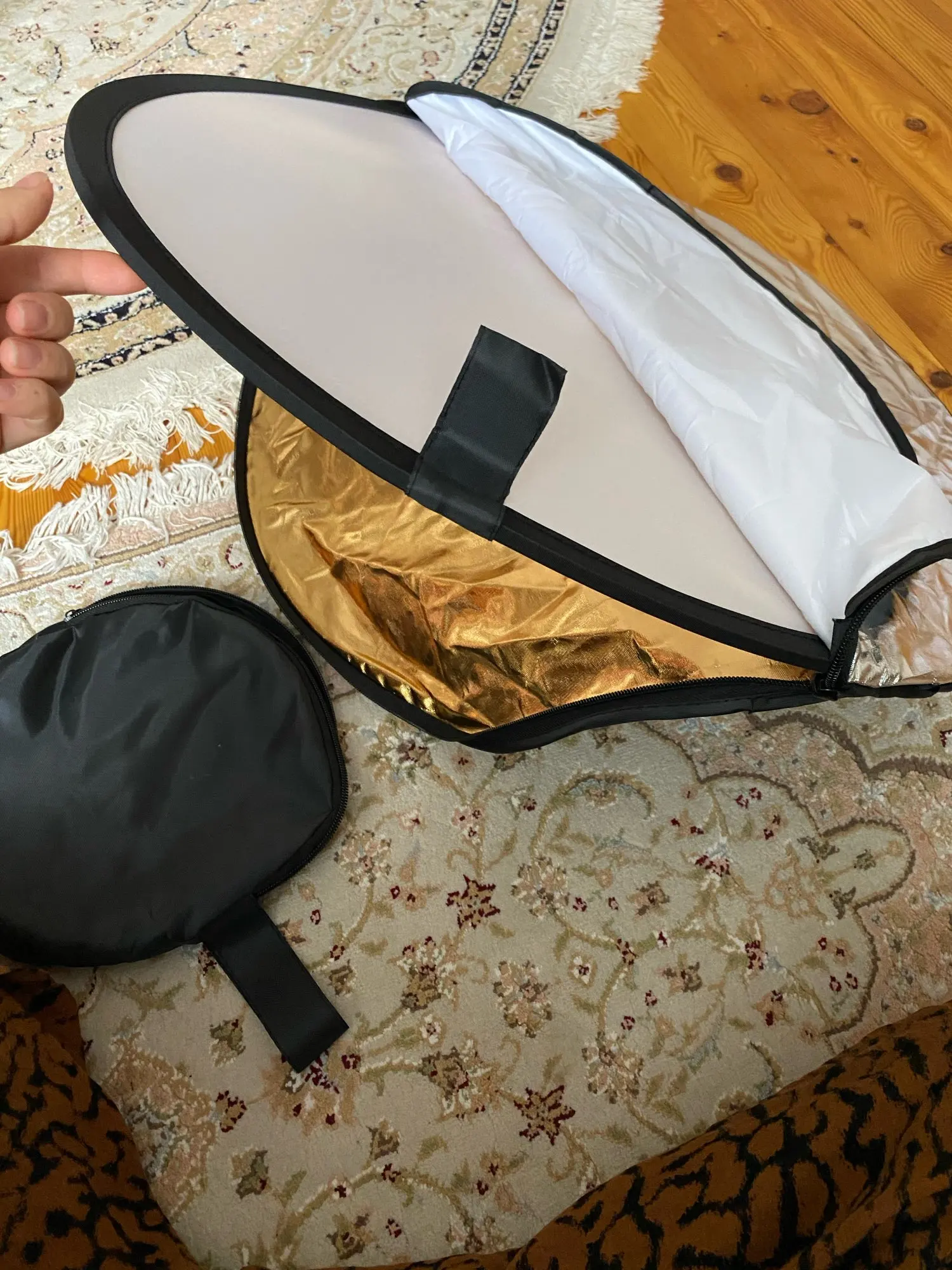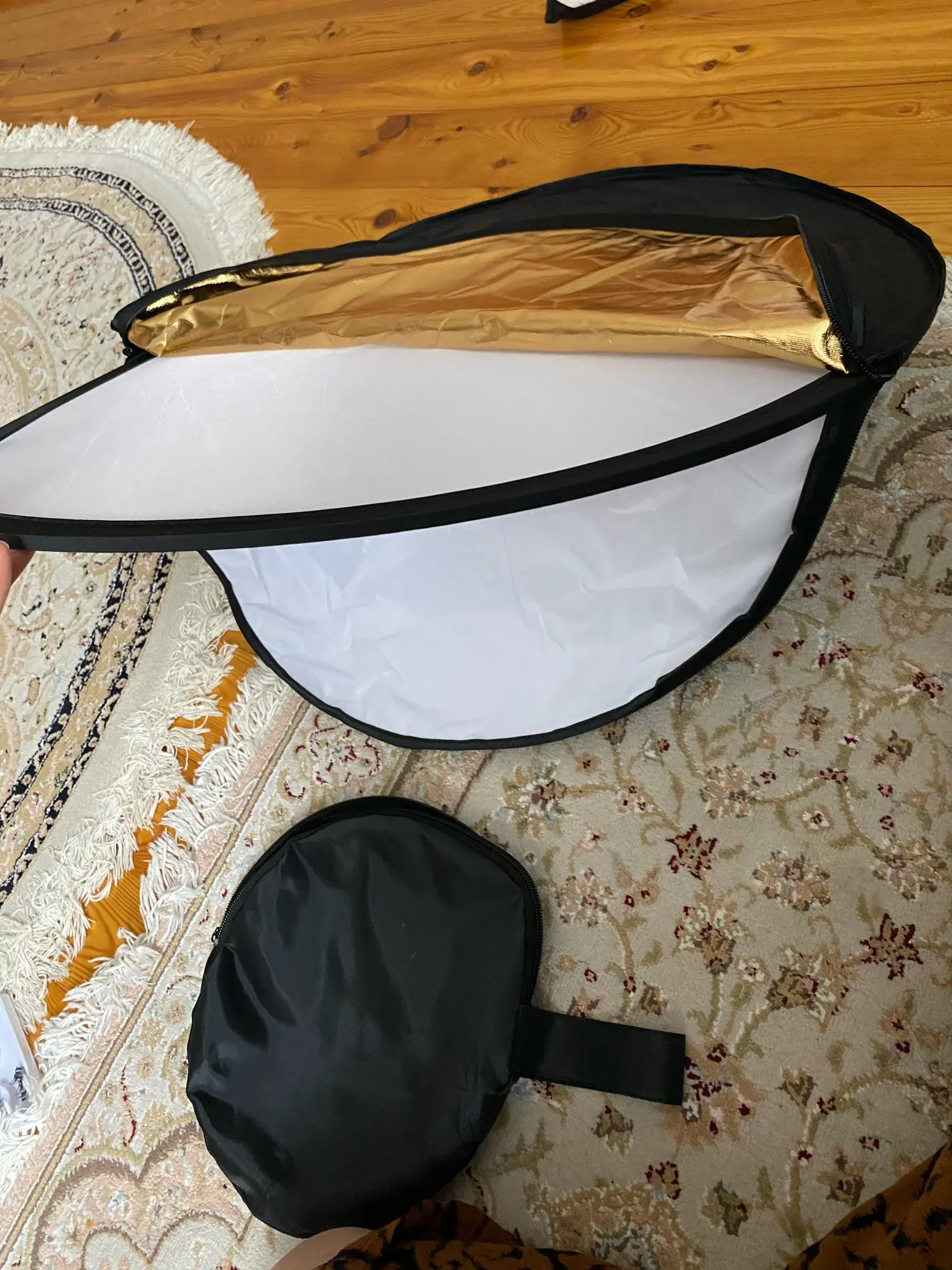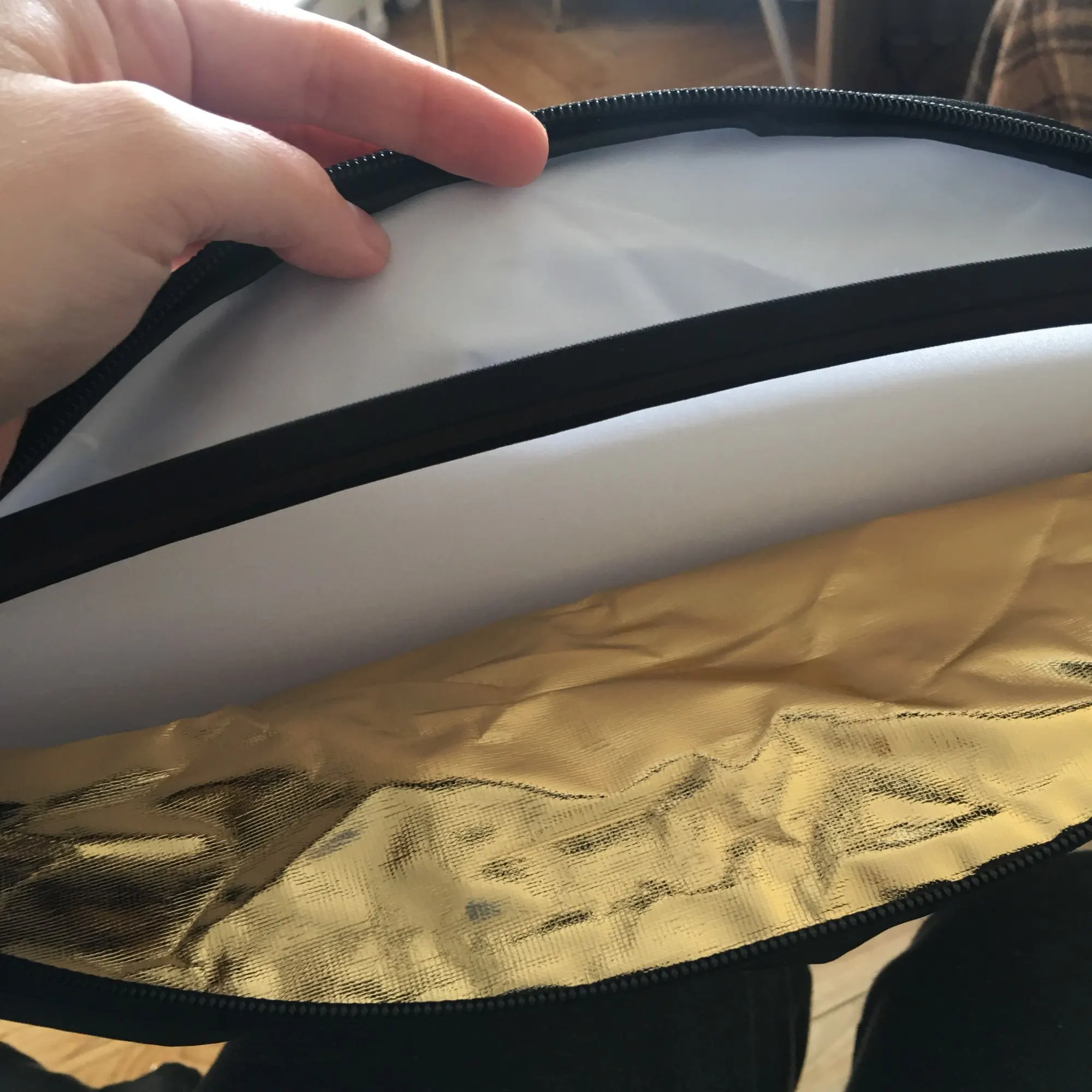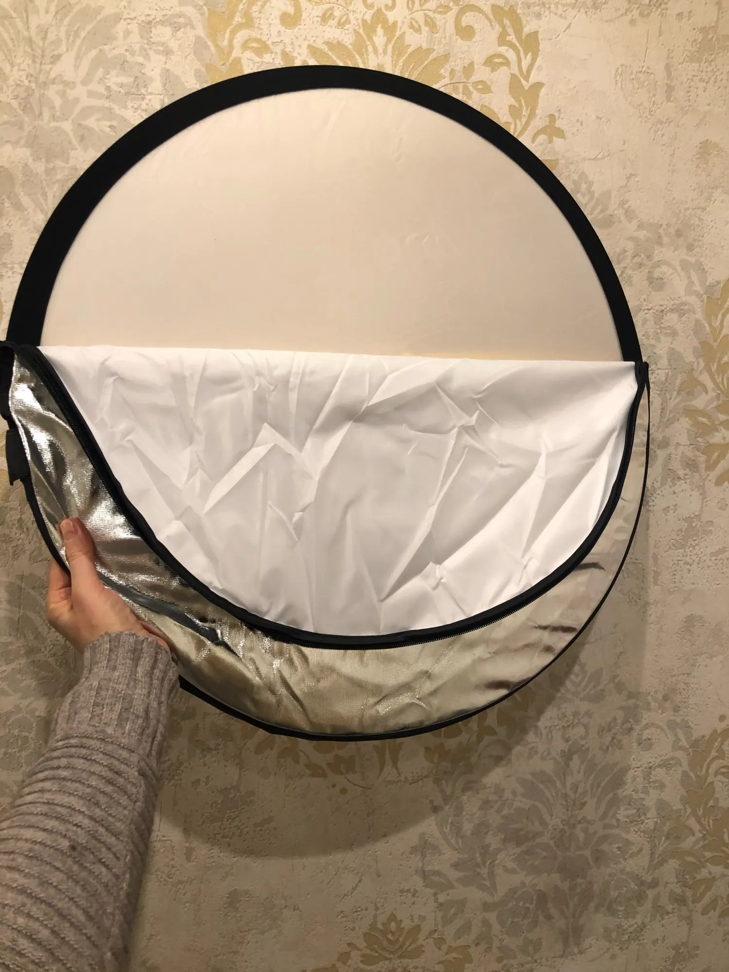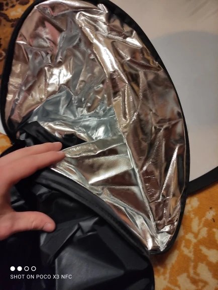 Хороший отражатель за свою цену. Соответствует описанию. На чехле немного не надежные швы, и немного осыпается ткань, но это легко поправить. Замок двустороний удобный.