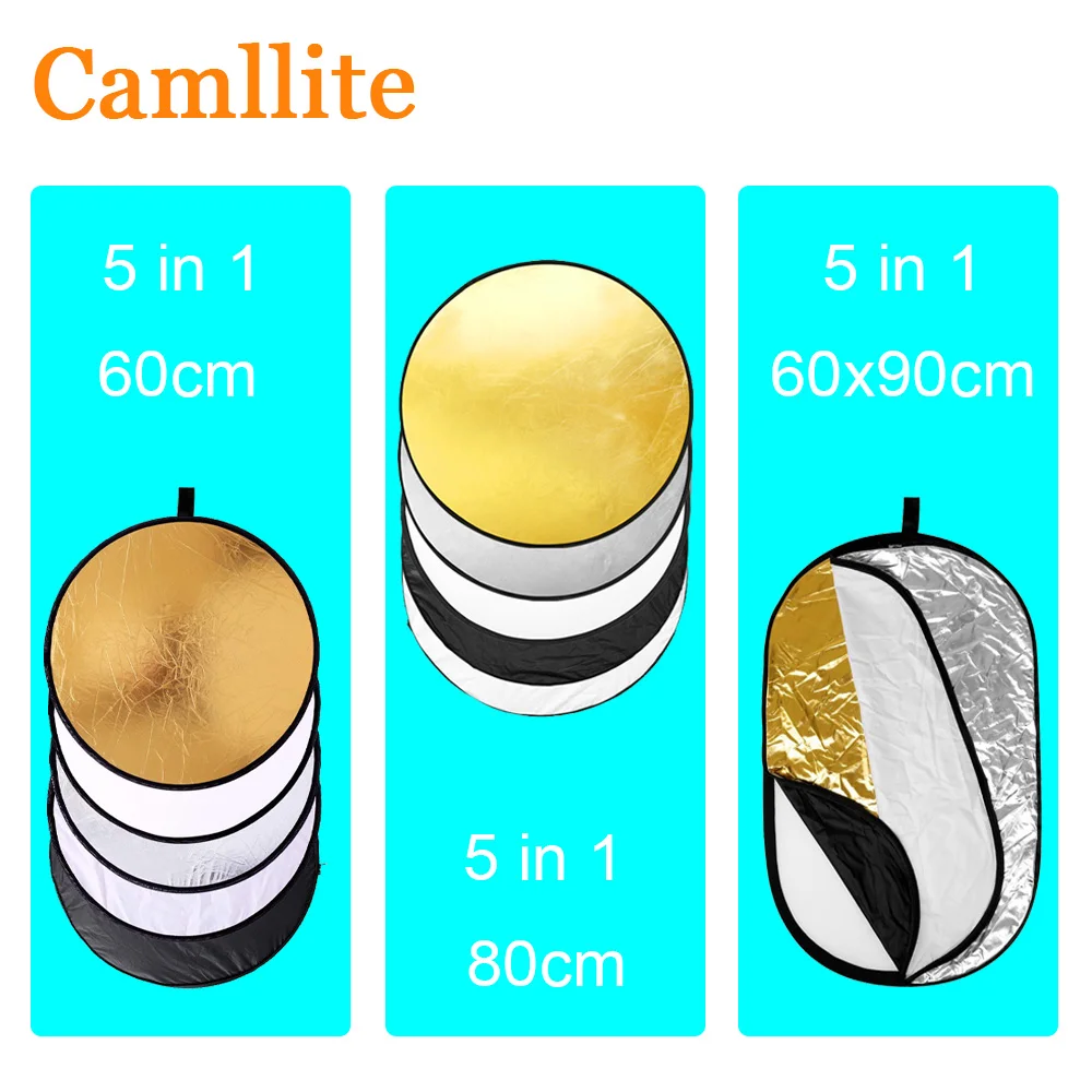 Отражатель складной круглый 5 в 1, студийный монодисковый рассеиватель светильник, 24 дюйма 60 см 80 см