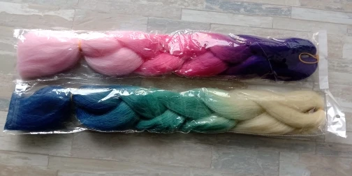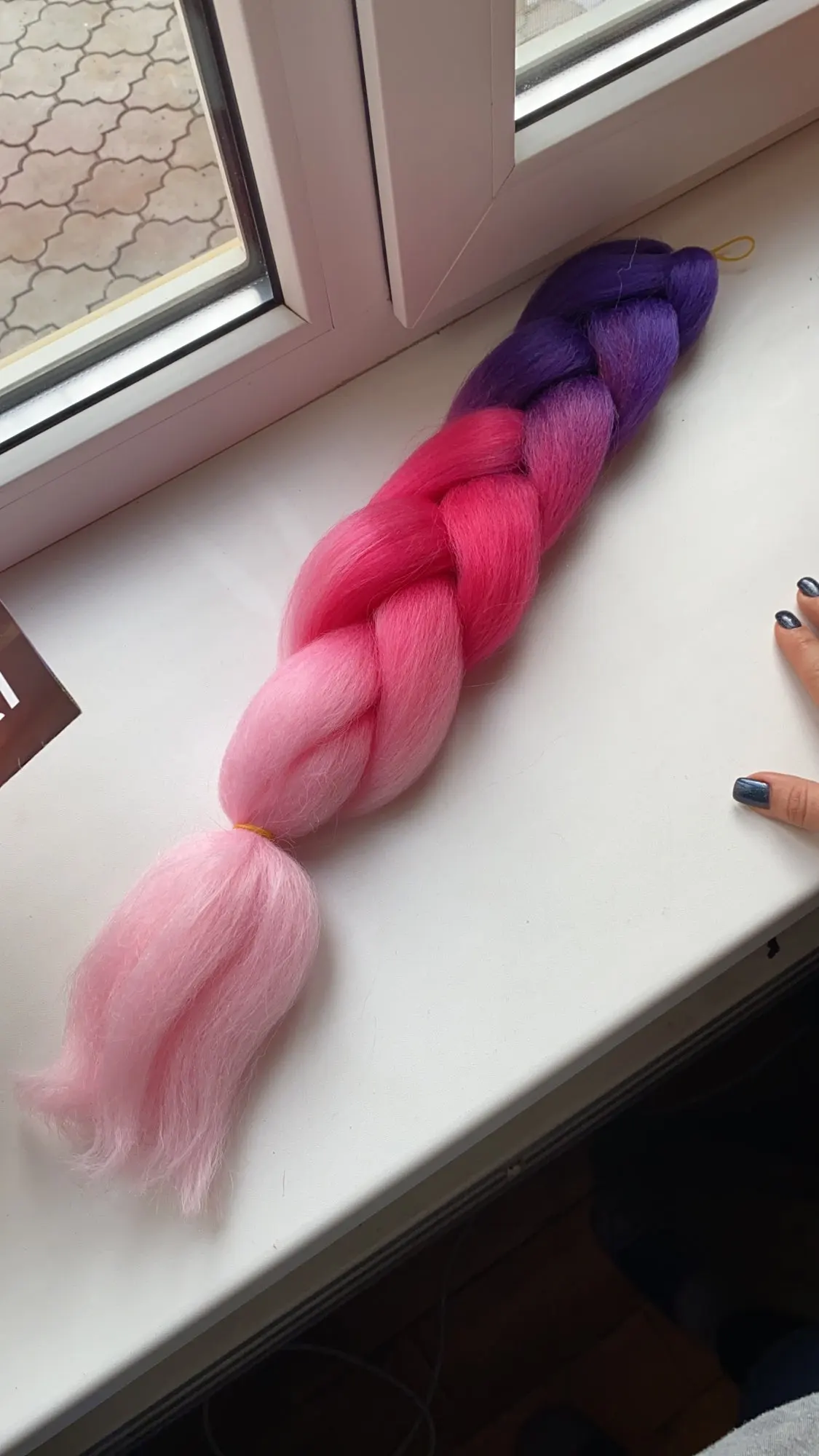 Длинная коса, около 70 см, волосинки тоненькие, тоньше кукольных, думала будут плотнее и жестче, еще не пробовала заплетать, позже дополню отзыв. Цвет красивый, спасибо продавцу!