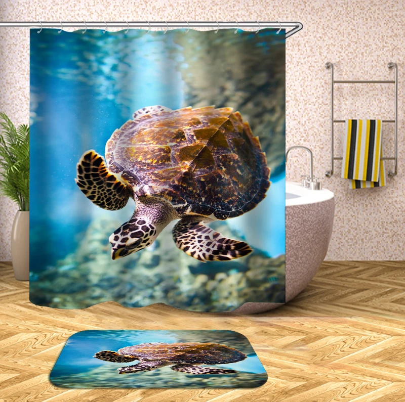 Занавеска для душа в виде морской черепахи, с крючками, занавеска д...
