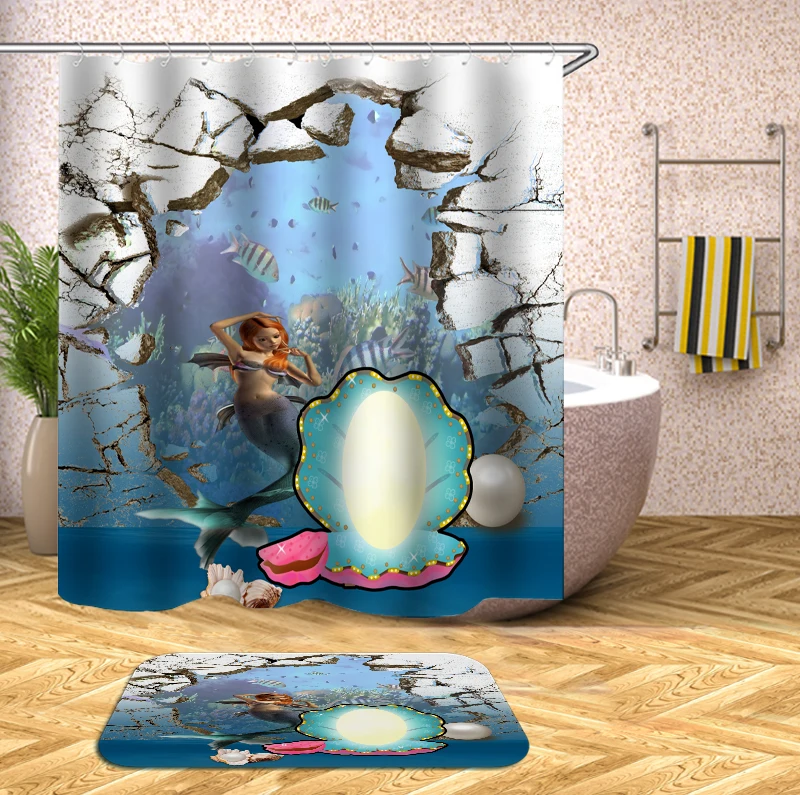 Русалка для ванной занавеска для душа 3D Русалка рыболовная ткань д...