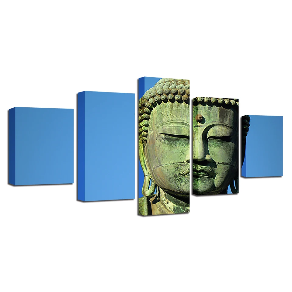Настенное искусство, украшение для дома, Картина на холсте, HD печать, 5 панелей, камень, Будда, гостиная, статуя Будды, живопись, рамка, плакаты