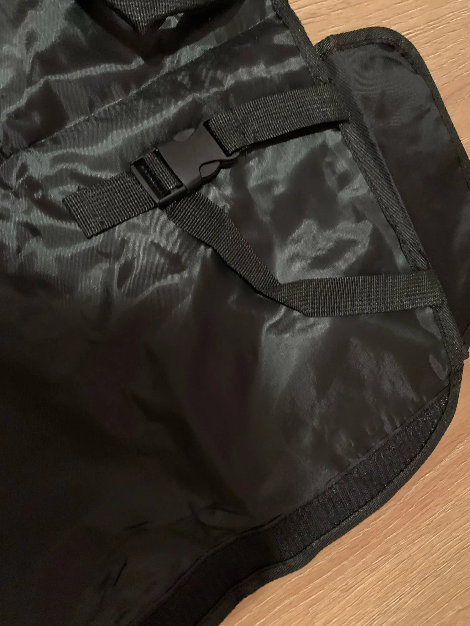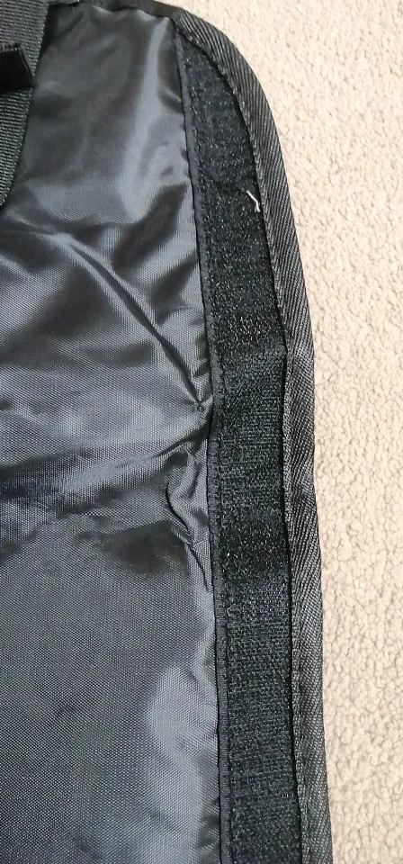 Немного подплавил ниток, прошито нормально, повно. Липучка на обратной стороне по всему периметру, кроме верха, где ремни, будет к сиденью прилегать плотно. Хорошая вещь.