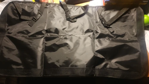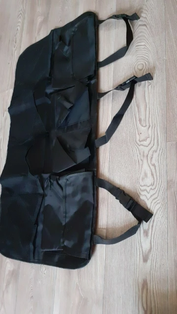 Большой на первый взгляд, прочный. Пришёл быстро, пока не поставил, думаю будет вихляться если сильно нагрузить. Внизу липучки, сверху затяжки. Прикольно, но ещё раз я бы не взял, дороговато для такого материала и думаю быстро испачкается... Продавану бобра