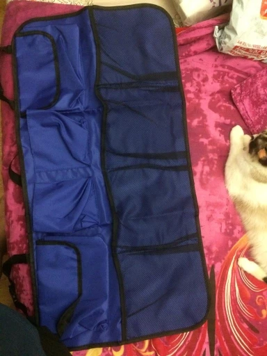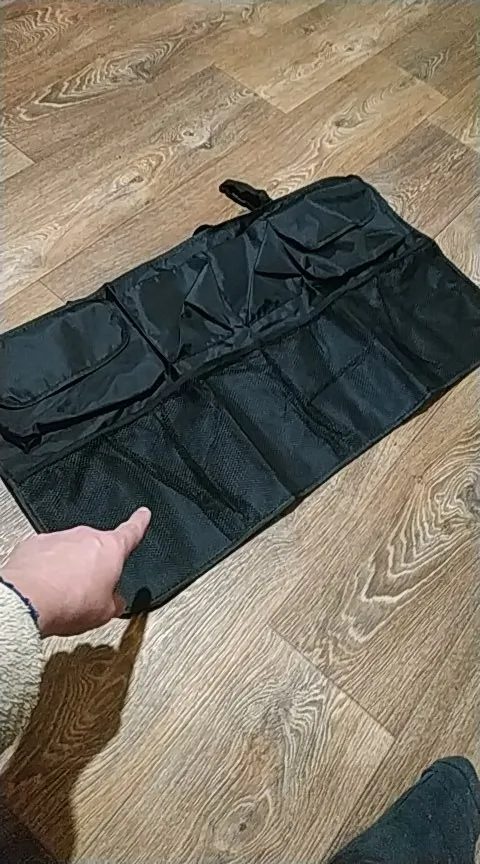 Хорошая вещь. На Рено Дастер хорошо подходит, почти на всю ширину спинки сиденья. Держится хорошо, по низу липучка, пошито хорошо. Не воняет. Всякая мелочевка, которая вечно летает по багажнику - теперь на своем месте. Аптечка в кармашки не влазит. 600 рублей может и не стоит, но если с купоном и скидкой то можно брать. Продавец молодец, отправил сразу. Фото хреновенькое, в темноте делал, но суть отображает )))