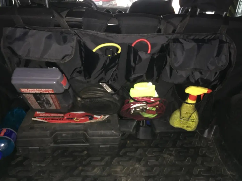 Удобная штука для мелочевки, если не занят багажник. Ехали на дальняк, 2 чел., багажник забит, повесил органайзер внутри салона на задние сиденья - тоже удобно.