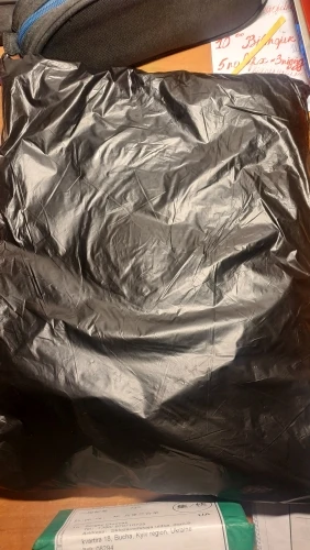 Доставили за месяц. Покупкой в принципе доволен, как на фото, так и в жизни. Ничего особенного, тряпка, сетка и ремни.