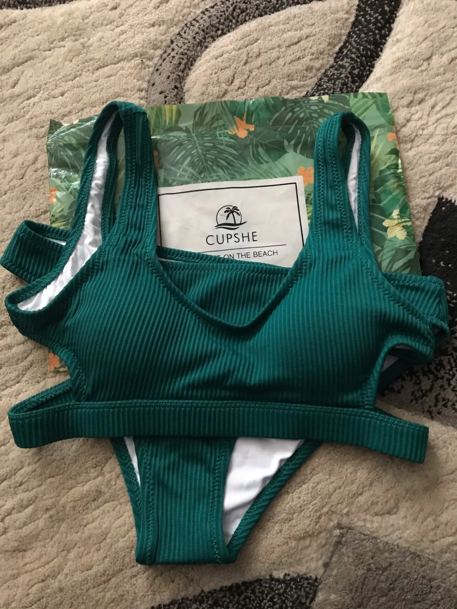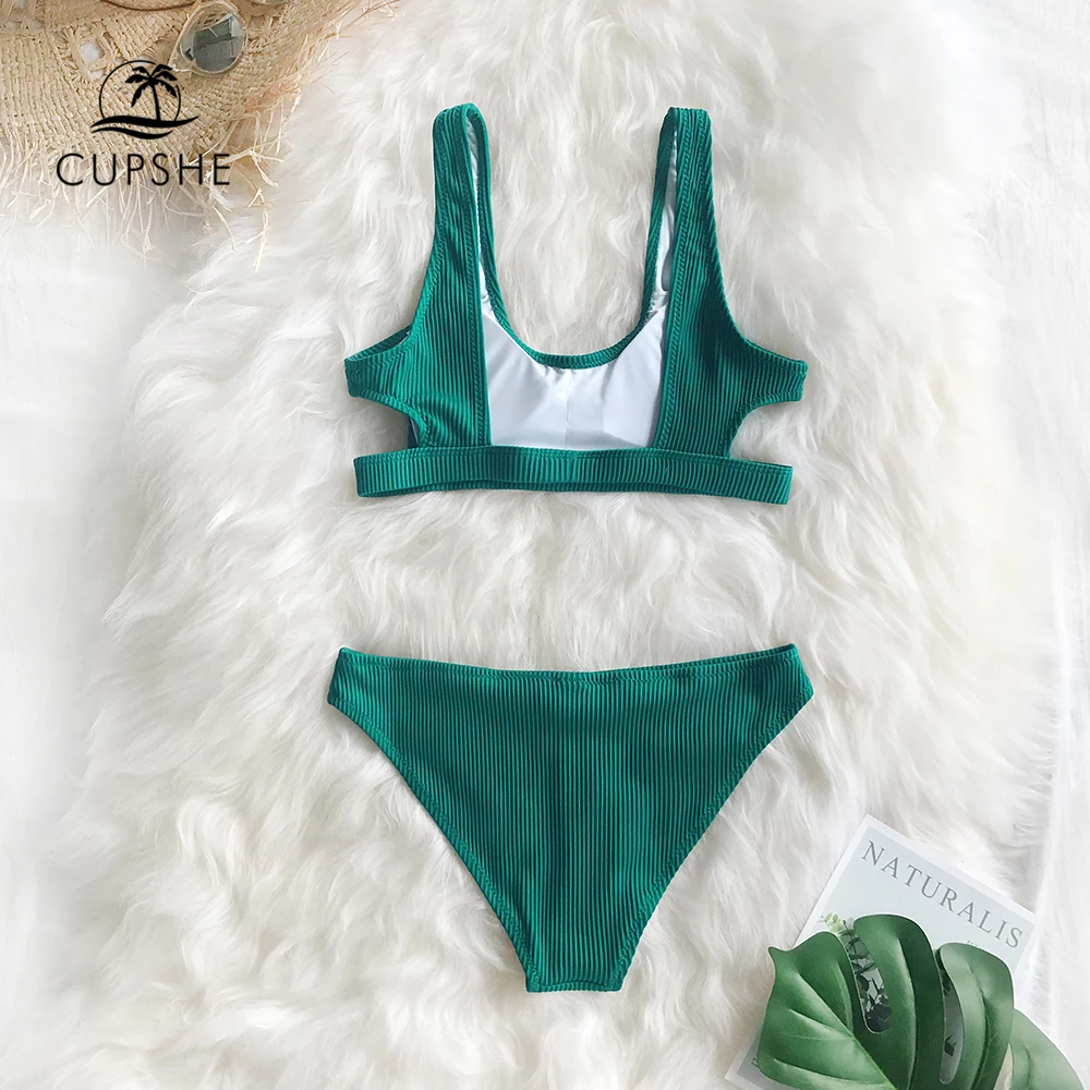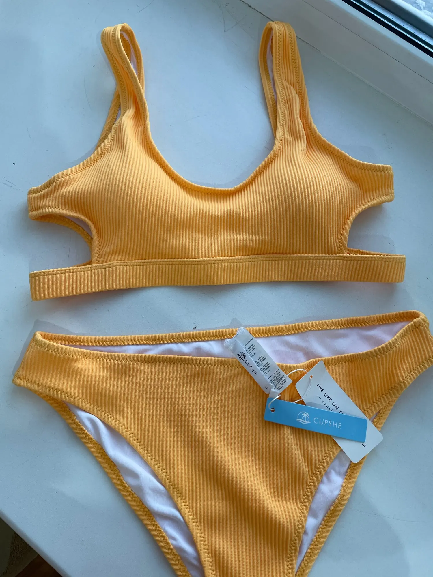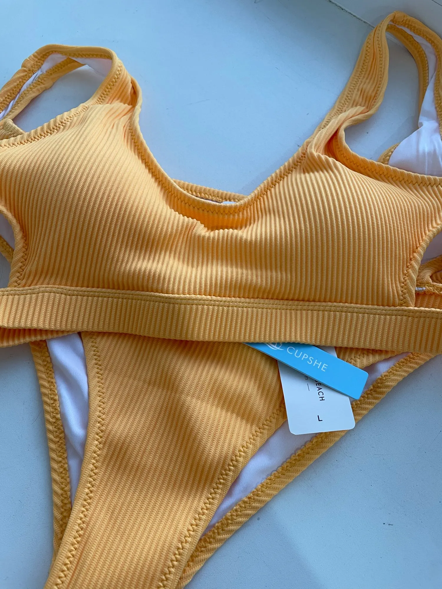 Cupshe, желтое перо, пряжа, однотонный комплект бикини, простое, с вырезом, с подкладкой, два предмета, купальник, 2022, Женские сексуальные стринги, купальники