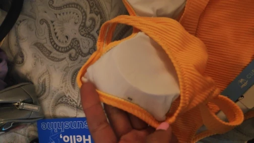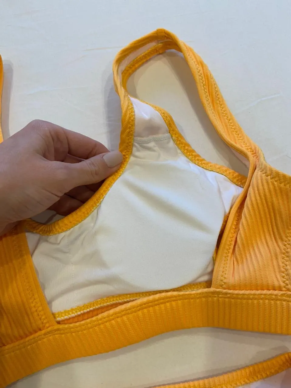 Заказывал муж, отзыв с его аккаунта. Купальник отличный! На параметры 77-62-89 брала xs, этот размер мне рекомендовал продавец, подошёл идеально! Как раз на небольшую грудь, с боков ничего не торчит. Внутри есть отдельные паролоновые вставки, они вытаскиваются. Крупный рубчик, очень интересно смотрится. Цвет совпадает с фото, такой желто-оранжевый. В общем, рекомендую.