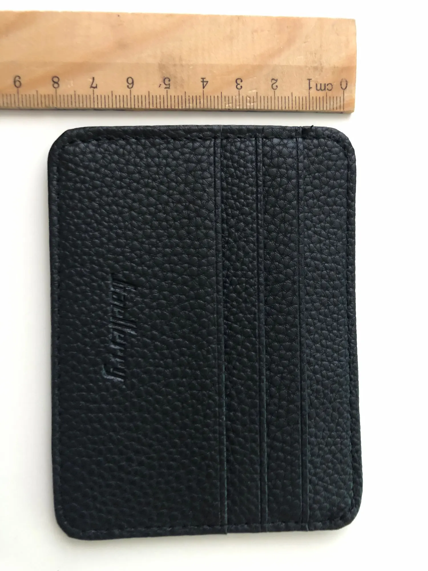 Бальше по размеру, чем кредитные карты на 1 см. Качество материала нормальное. Нет жёсткой вставки в отделении для наличных. Доставка около месяца.
