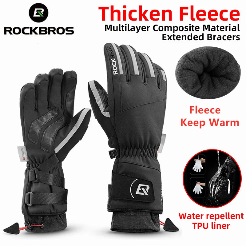 Зимние перчатки ROCKBROS, велосипедные перчатки, зимние флисовые перчатки для велоспорта, мотоциклетные перчатки, перчатки для катания на лыжах, велосипед