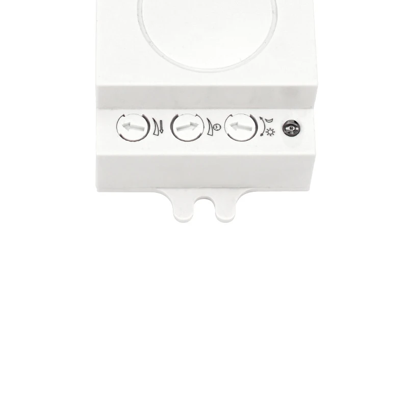 Датчик представляет собой активный детектор движения, он испускает высокочастотные электромагнитные волны (5,8 ГГц) и получил свой эхо. Датчик обнаруживает изменение эхо от даже самого небольшого движения в зоне обнаружения. Затем микропроцессор запускает команду «включить светильник». Обнаружение возможно через двери, стекла или тонкие стены. Важно: лица или предметы, движущиеся к датчику, обнаруживаются лучше всего! Примечание: высокочастотная выходная мощность этого датчика составляет <10 мВт-это всего лишь один 100-й мощности передачи мобильный телефон или выход микроволновой печи. Технические характеристики Источника питания: 220-240VAC Мощность Частота: 50/60 Гц Установка: в помещении, потолочное крепление HF система: 5,8 GHz CW радар, ISM band Мощность передачи:<10 мВт Номинальная нагрузка: индукция 300 Вт. Сопротивление 600w Угол обнаружения: 360 ° Охват: 2-8 м (радиус), регулируемый Настройка времени: от 8 до 12 мин Светильник управления: 5 ~ 2000LUX Потребеление энергии: approx.0.9W