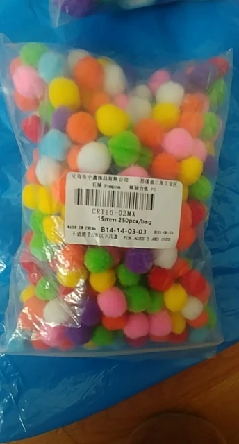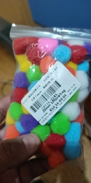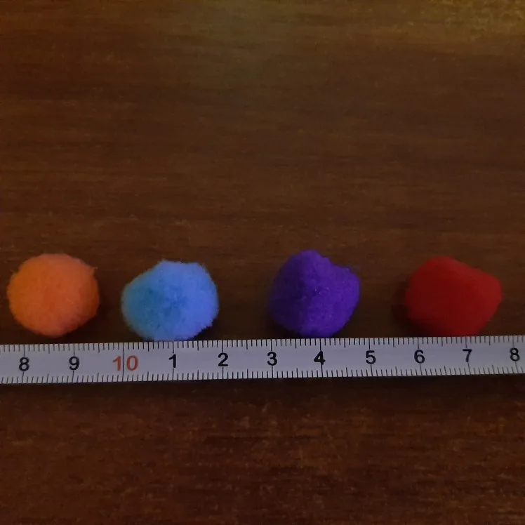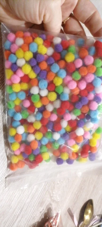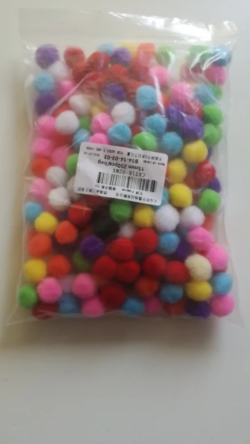 хорошие помпоны, по размеру все примерно одинаковые, цвет яркий и цена хорошая за такое количество, заказывала коту для игр, ему понравились, носится с ними по всей квартире, заказывала 100 шт, продавец положил 110, продавцу спасибо, буду заказывать еще