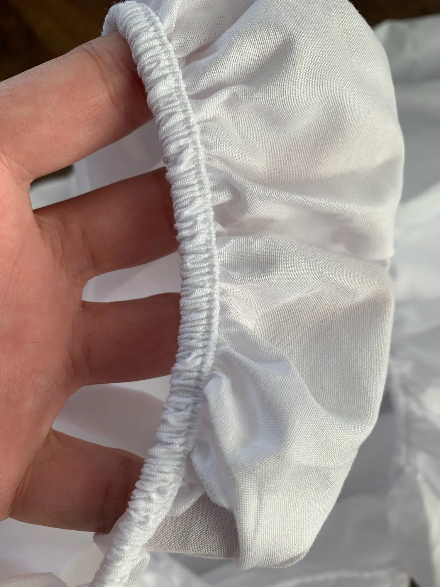 Ткань на ощупь хорошая, но матрас моей кровати был 90x200x25, поэтому я заказал 90x200x25, листы были маленькими, боковая часть кровати не покрывает матрасы, она, вероятно, должна быть немного больше толщины (25), чтобы покрыть матрас снизу