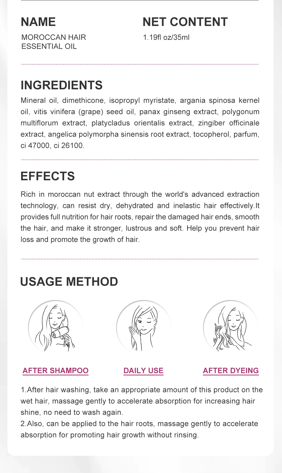 Масло пахнет как цветочная пыльца, очень приятно. Необходима всего капля на длинные волосы, больше уже будет жирновато. Хорошо впитывается, придает блеск. Не могу сказать про эффект как на картинке, т.к. у меня волосы с кератином. Покупкой довольна, продавца рекомендую. В подарок положил пробник крема