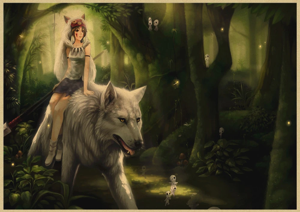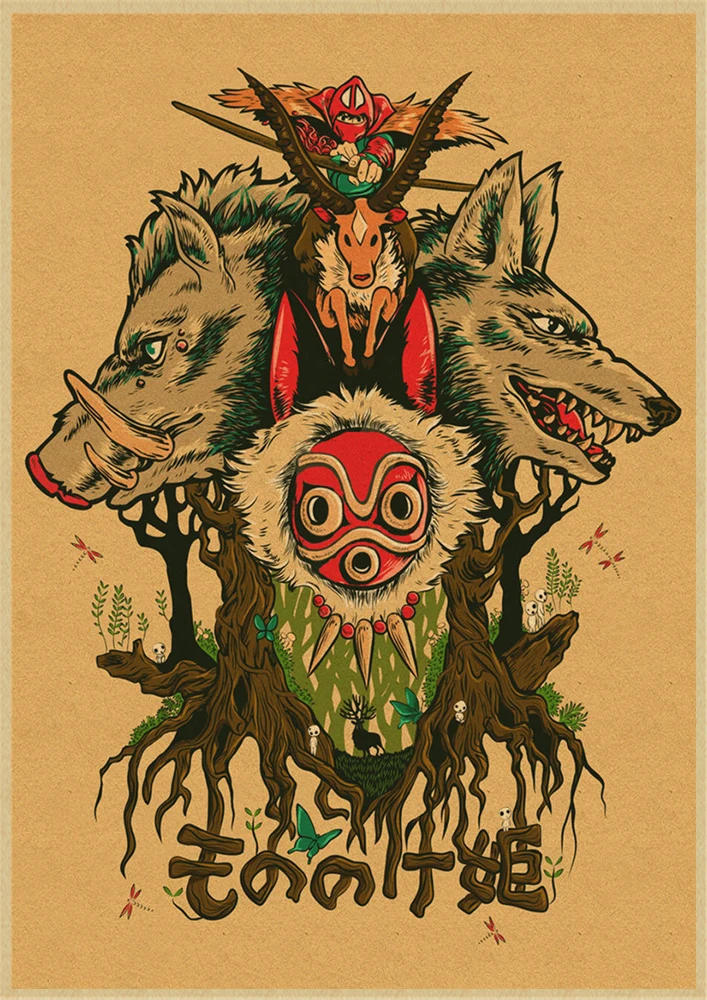 Мононоке химе Миядзаки Хаяо ядро мультфильм крафт-бумага постер для стены в детской комнате декоративные винтажные картины