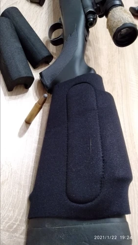 гребень приклада удобный. удобнее тех, которые на липучках. плотнее. на cz 550 lux встал идеально. только когда одевал, слегка порвал о заднюю антапку. надеюсь дальше не пойдет. надевал со стороны ствола, вынув затвор. отправка и доставка быстрые.