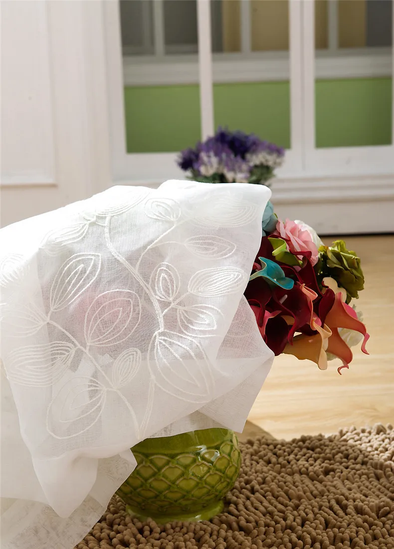 Byetee занавески с белыми листьями, s-занавески с вышивкой для гостиной, спальни, дверные занавески для кухни