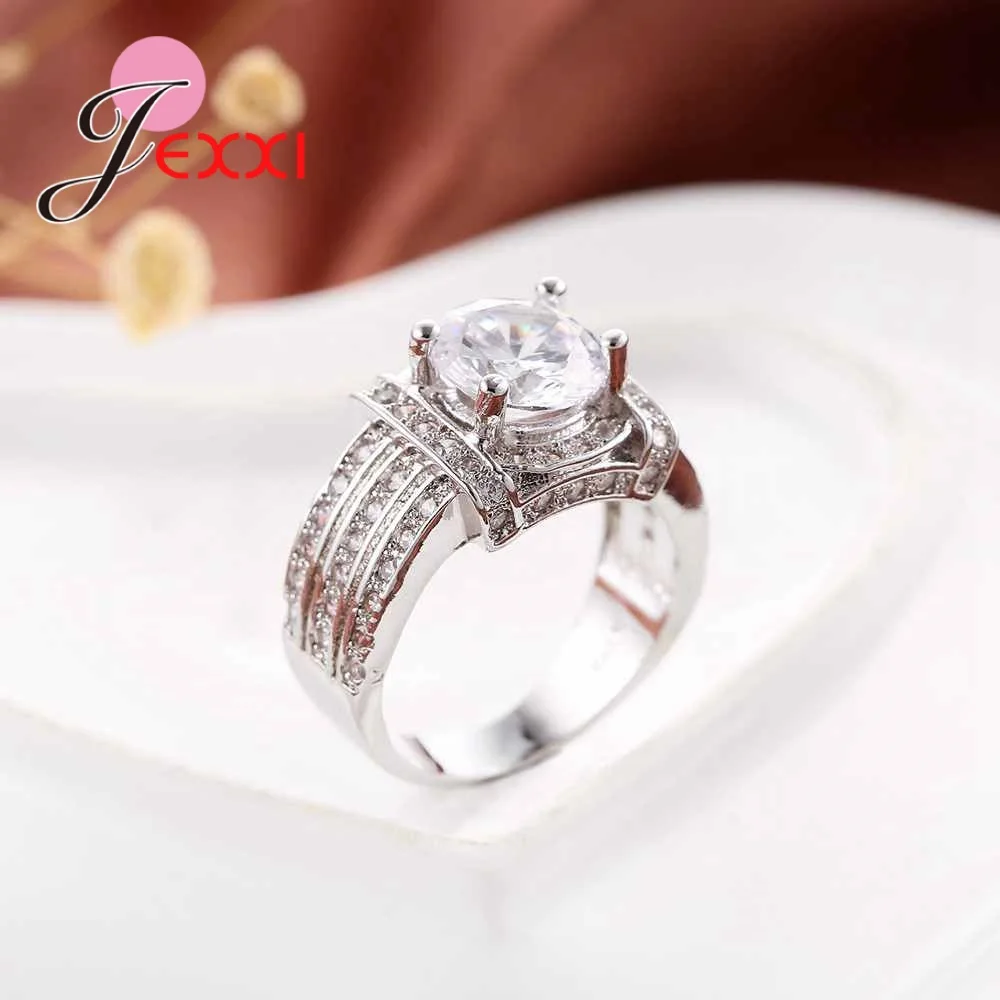 Новые большие круглые свадебные кольца Стразы из серебра 925 пробы