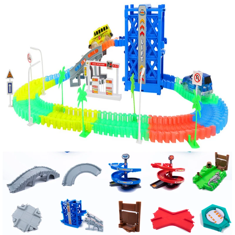 Светящиеся гибкие трековые Светодиодные Автомобильные игрушки 180-240 шт. трековые игрушки, пазлы, коллекция гоночных треков, детский подарок на день рождения
