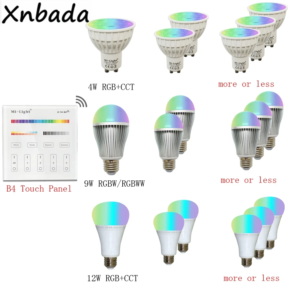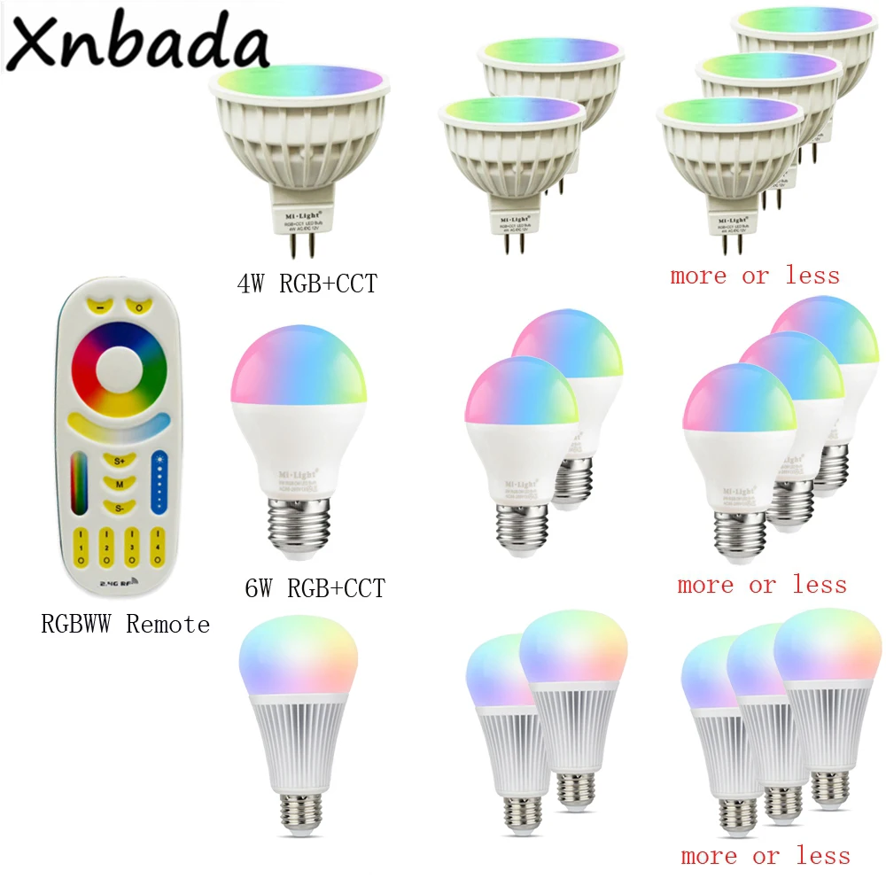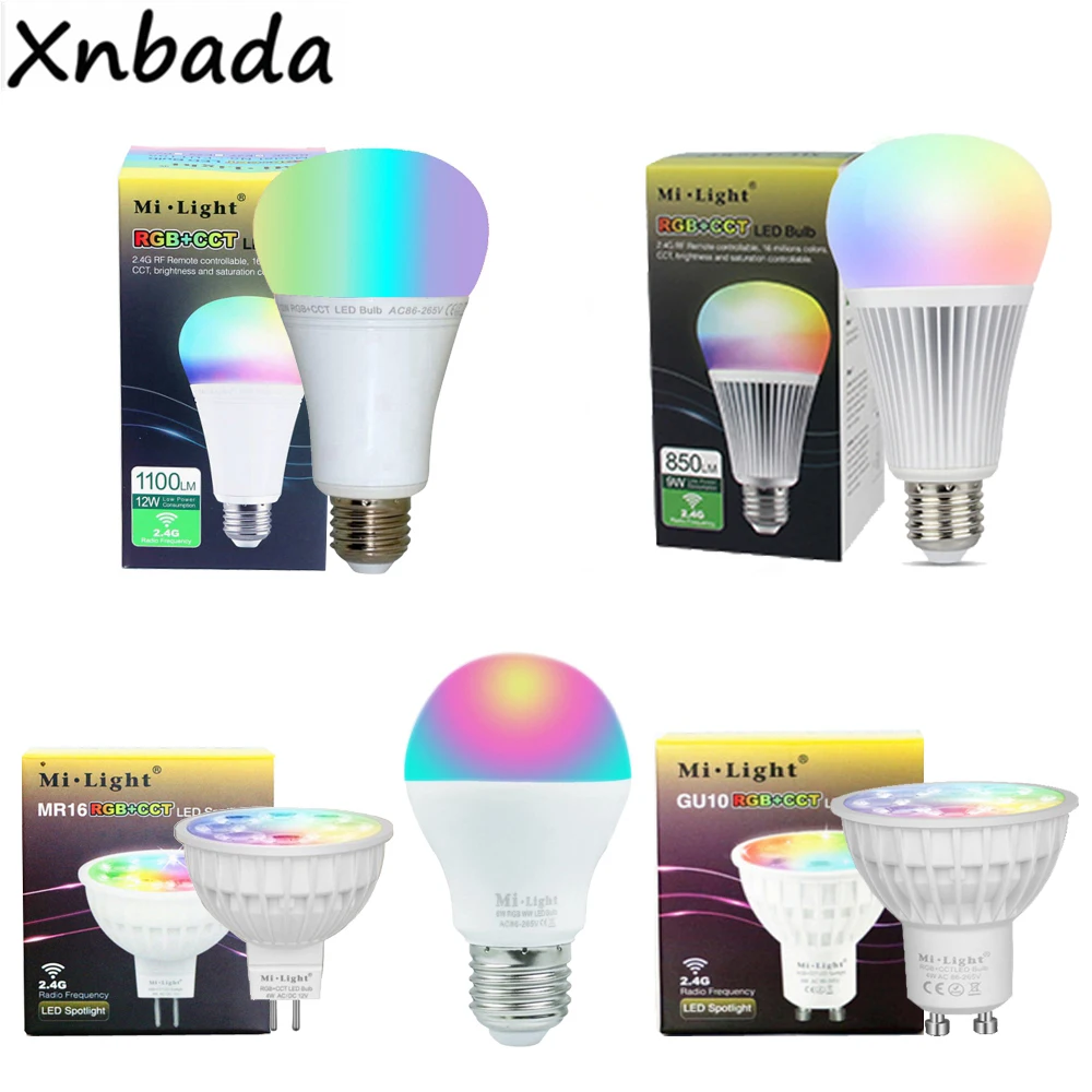 MiBoxer(Milight) диммируемая Светодиодная лампа 4 Вт 6 Вт 8 Вт 12 Вт MR16 GU10 E27 RGB + CCT светодиодные лампы