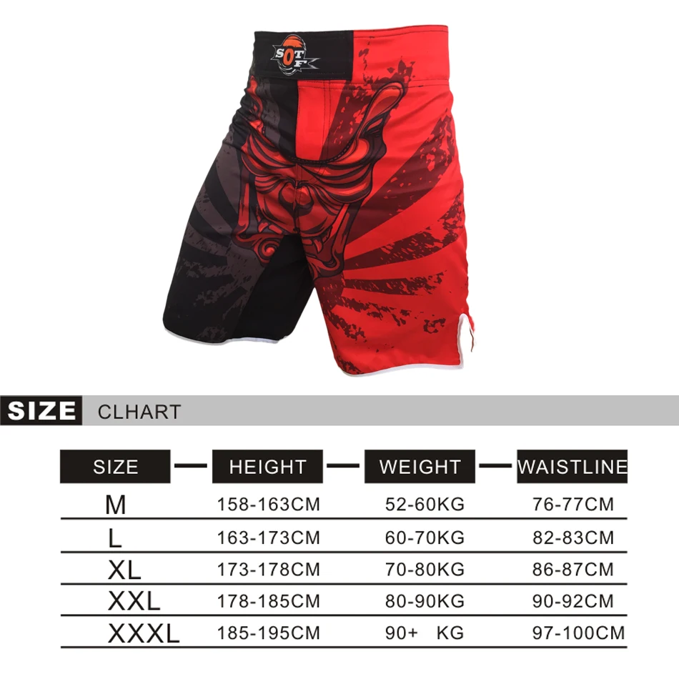 Мужские боксерские шорты SOTF MMA, красные, черные, белые боксерские шорты для тайского бокса, шорты для кикбоксинга, шорты для преторианской боксеи, муай тай, mma