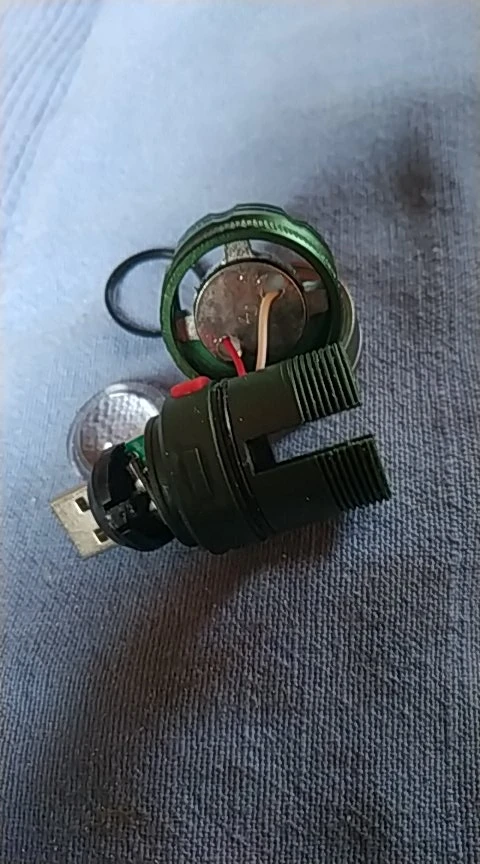 Фонарик сильно разогрелся при включении и перестал работать через 1 минуту. Причина неисправности оказались небольшие излишки припоя (сопля) на плате, которые приводили к короткому замыканию. После устранения этой неисправности, фонарик исправно работает. Вероятность такой неисправности была очень мизерной, а так фонарик сделан качественно. Кнопка и корпус вокруг нее сделаны из пластмассы, линза тоже из пластмассы, все остальное из алюминиевого сплава.