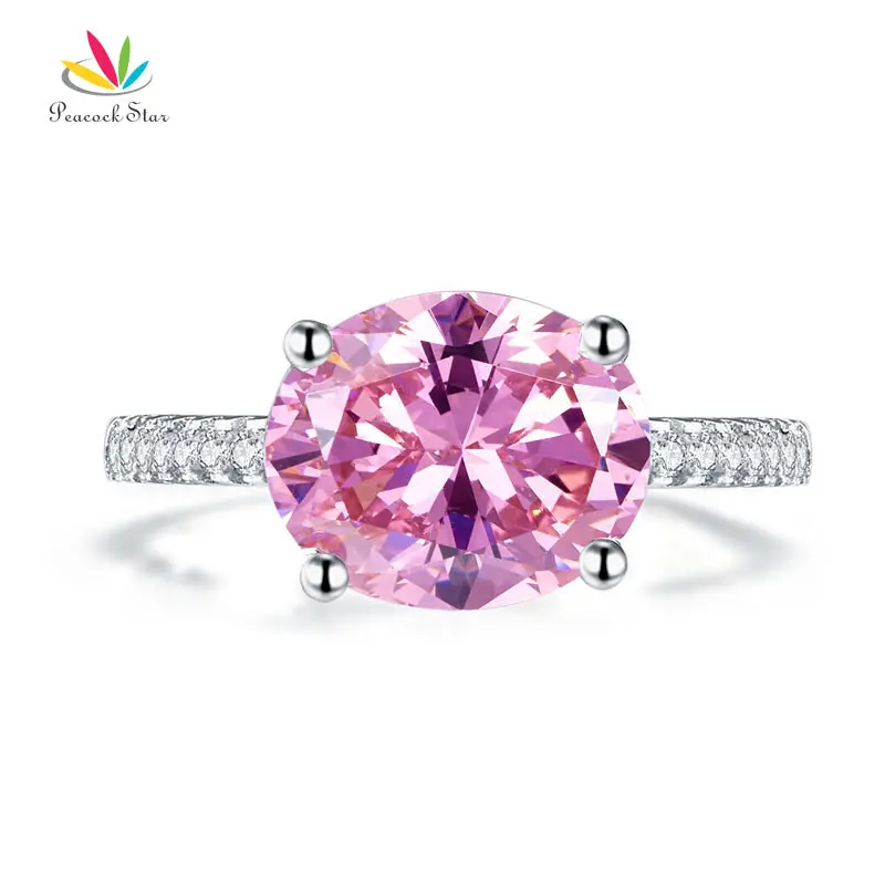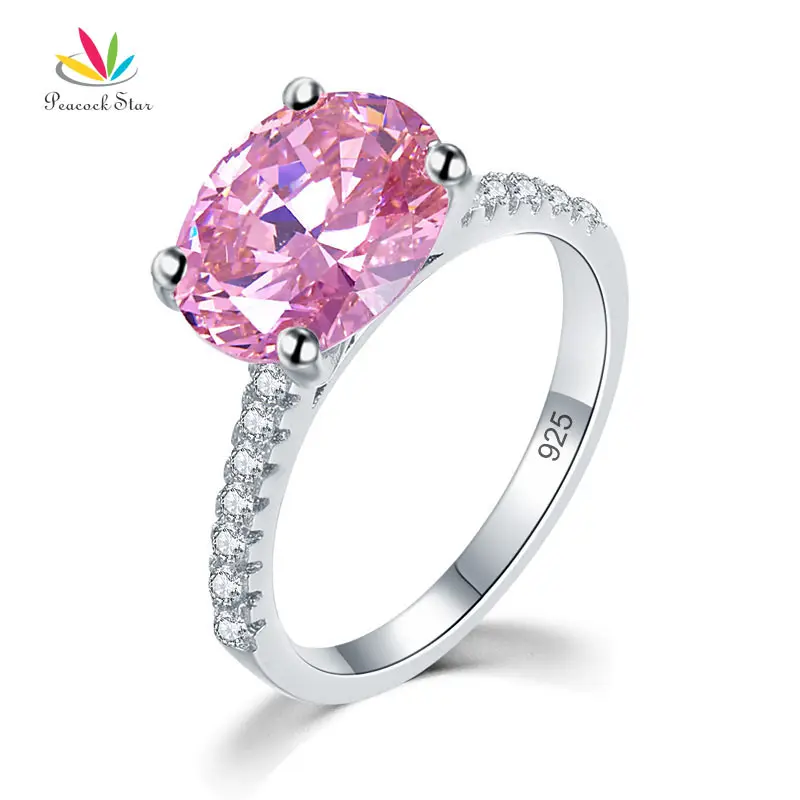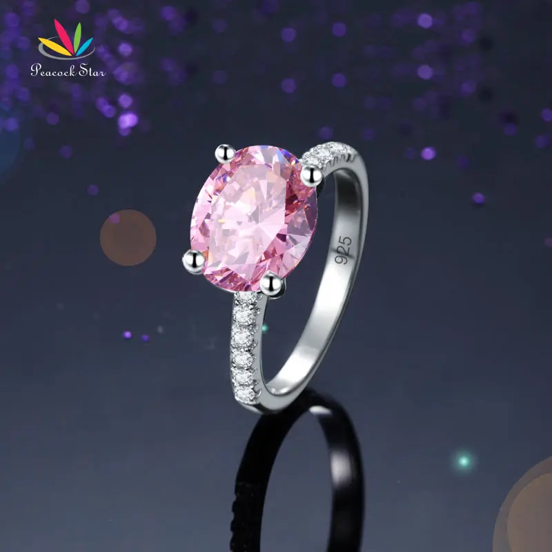 Павлин звезда Твердые 925 пробы Серебряное кольцо 4 карат необычные розовый овальным вырезом Роскошные ювелирные изделия CFR8302