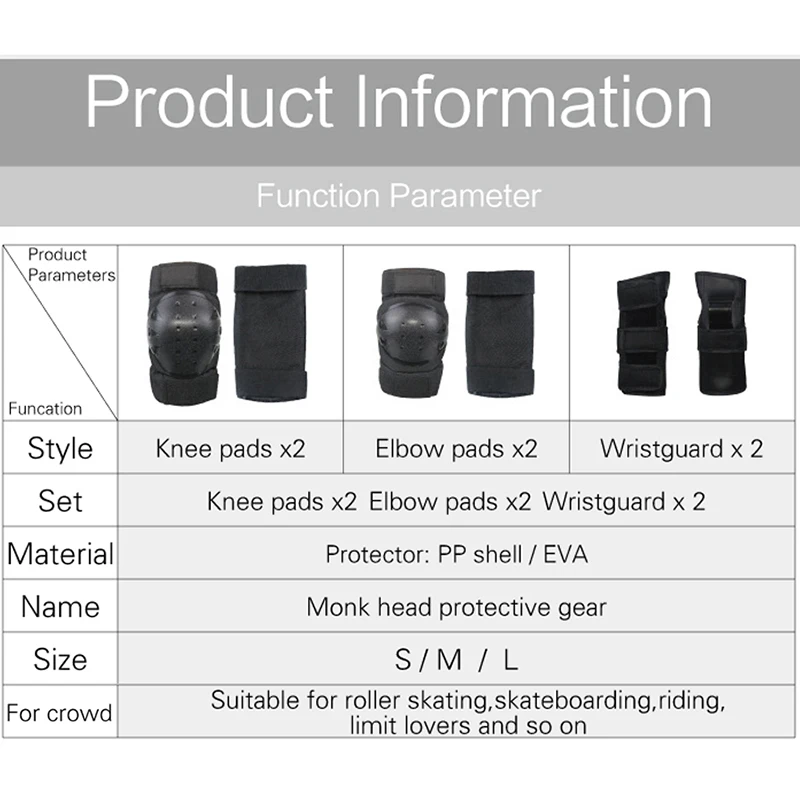 Наколенники, налокотники, защита запястья, для детей и взрослых, 6 шт.компл.