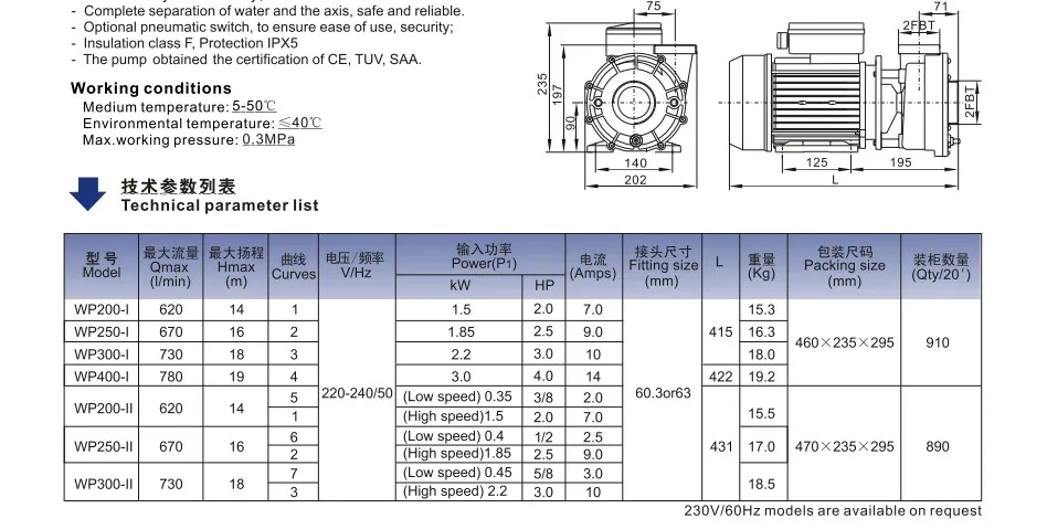 Spa бассейн двойной скоростной насос WP200-II 2HP 1,5 кВт AMP plug ...