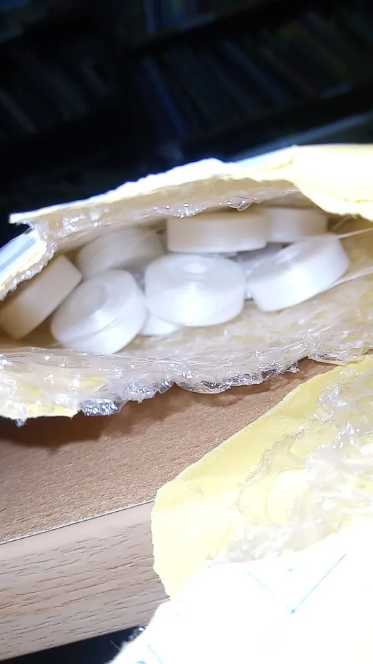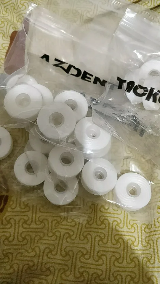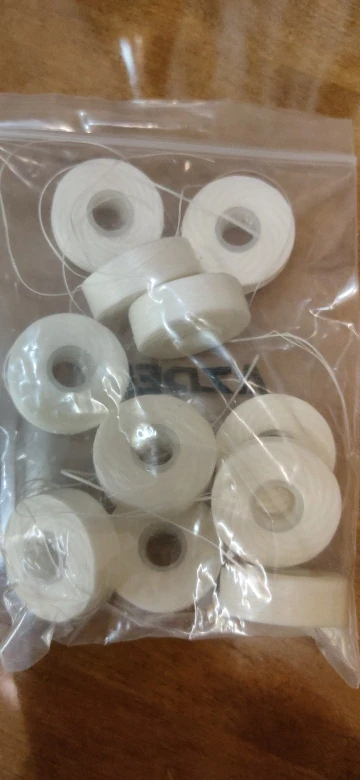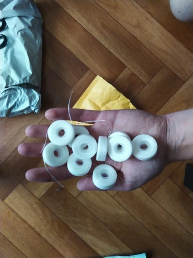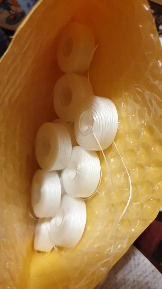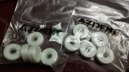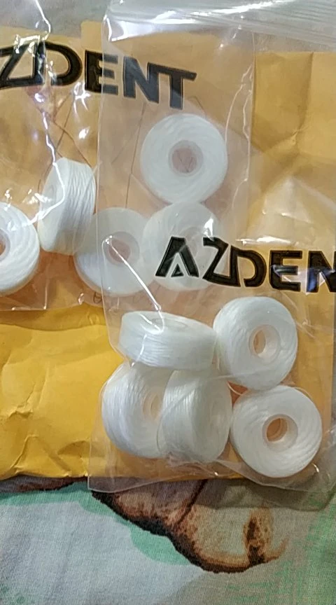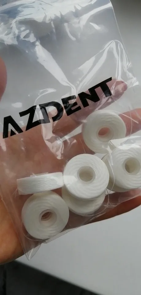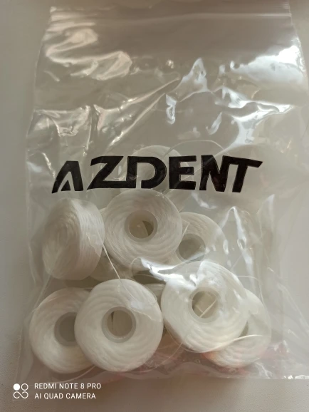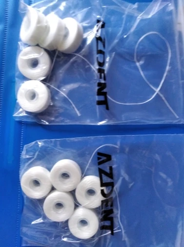 Пришли, десять штук, мятой пропахла вся посылка. Нитки хорошие, разве что не упакованы никак. Такие катушки надо заряжать в устройство для подачи. Как у человека, постоянно пользующегося зубной нитью, у меня есть такое. По качеству хорошие, такие катушки у нас покупать гораздо дороже за штуку