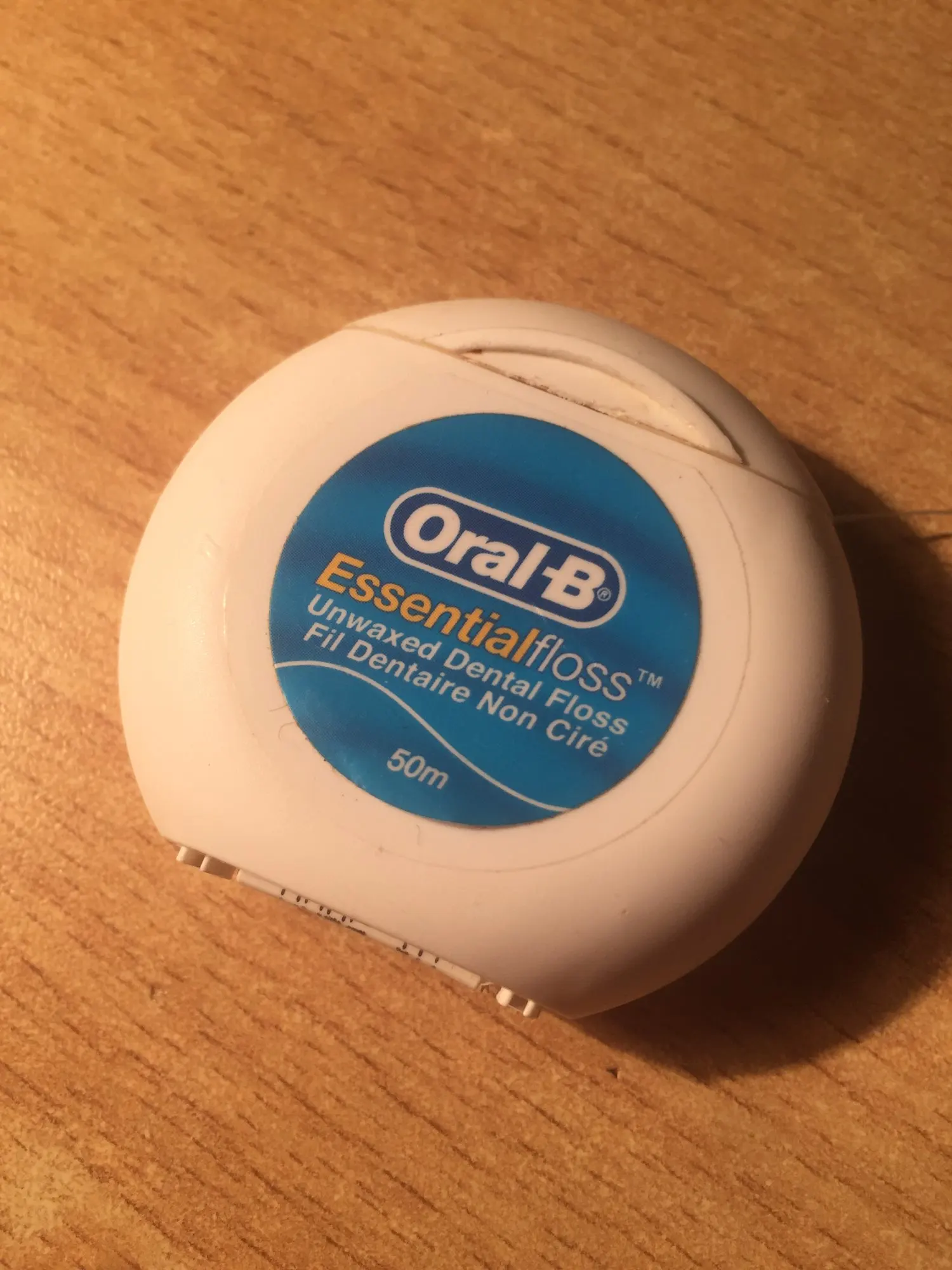 Зубная нить хорошего качества с мятным ароматом. Брали и белую, и черную, и зеленую. Белая самая тонкая, но на ней меньше всего воска. Зеленая самая толстая и на ней больше всего воска. Черная что-то посередине между белой и зеленой, понравилась больше всего: пролезает в любой промежуток, не махрится, но вычищает отлично. Все нити подошли к коробочкам от Colgate и Dentorol.