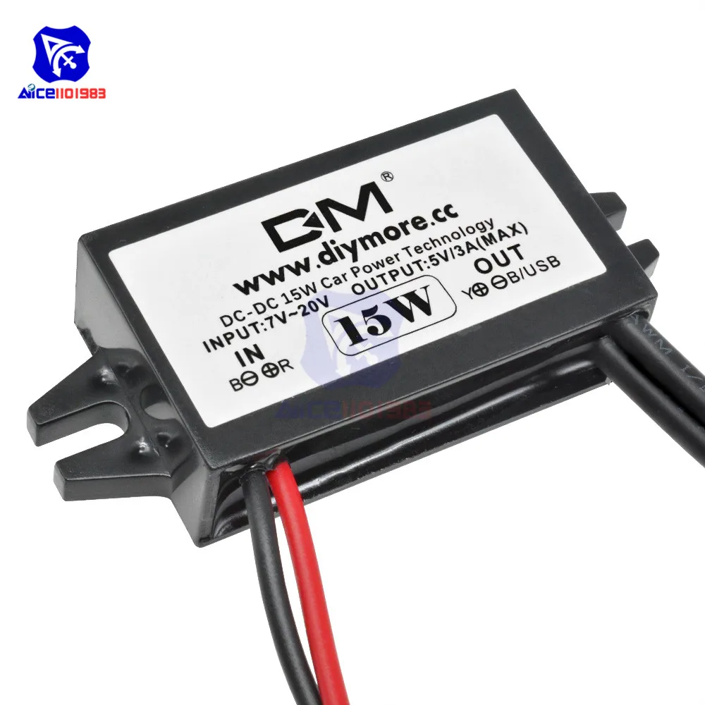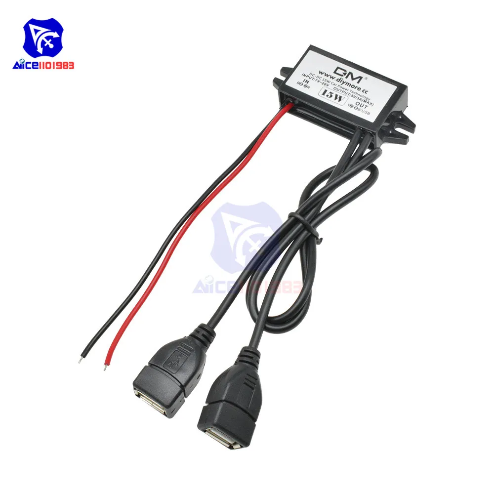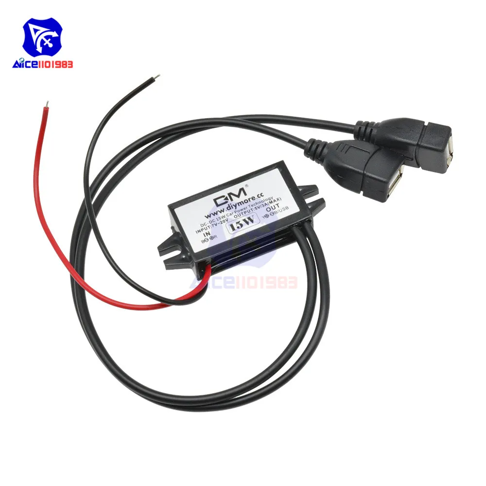 Понижающий преобразователь diymore DC-DC 12 В в 5 в 3 А 15 Вт, понижающий модуль питания, двойной USB-выход, адаптер для автомобиля