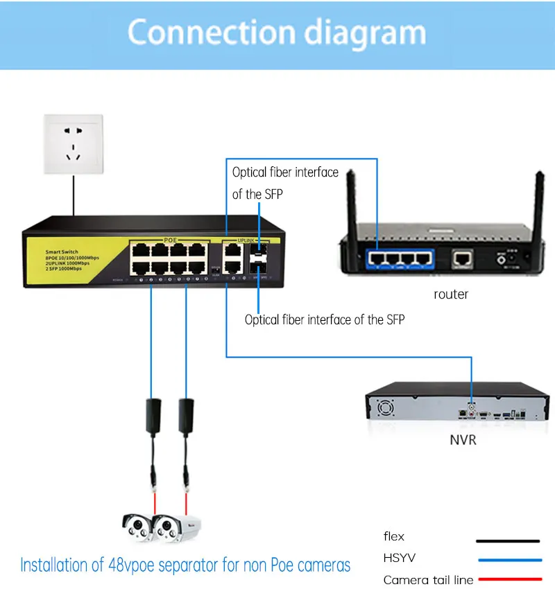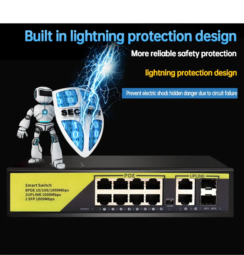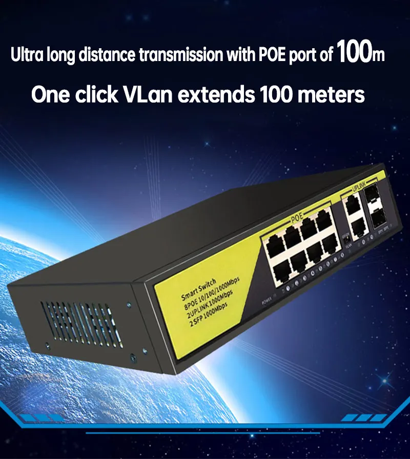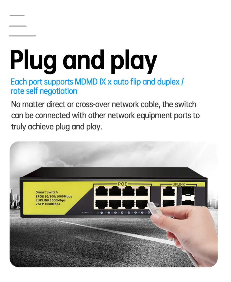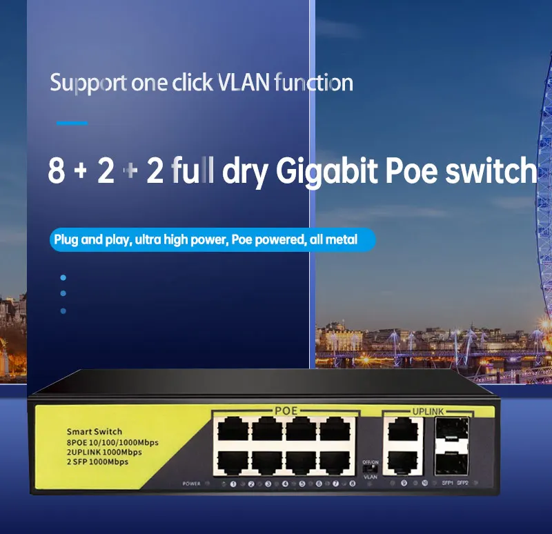 POE гигабитный сетевой коммутатор 101001000 Мбитс 8 портов POE + 2 канала связи + 2 802,3 afat коммутатор ethernet для ip-камерыбеспроводной AP
