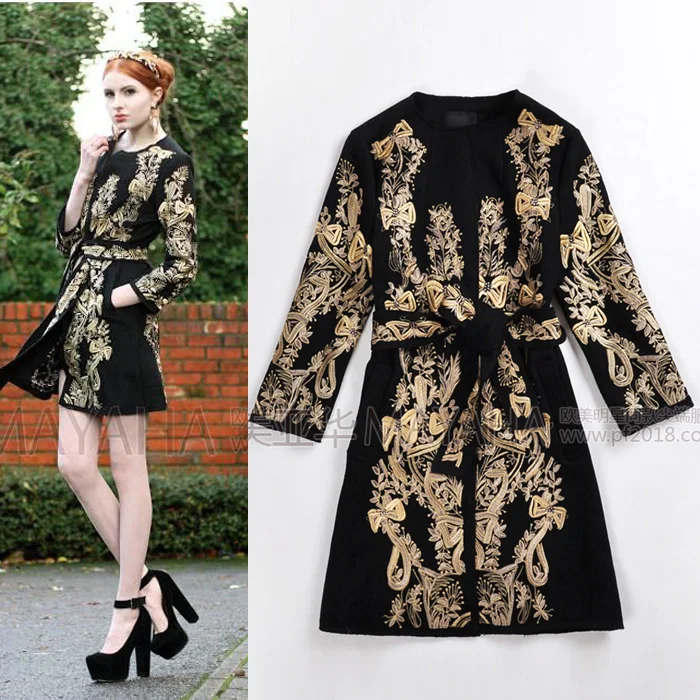 Новое зимнее платье с тяжелой золотой нитью, пальто с вышивкой, популярный стиль, большие размеры