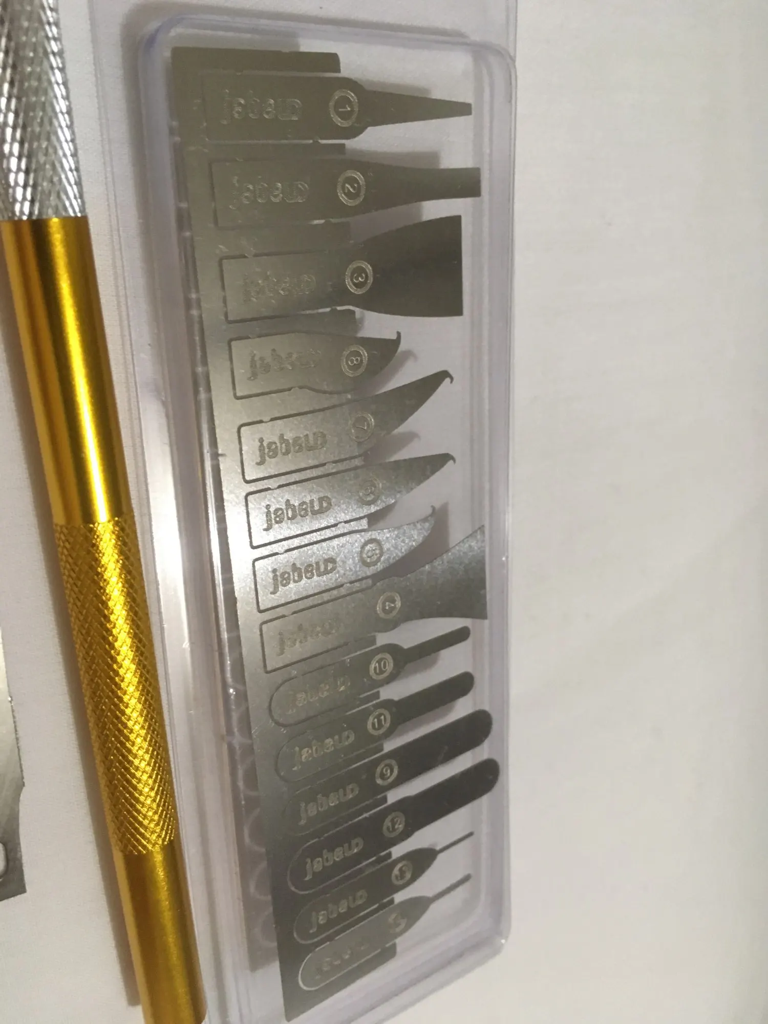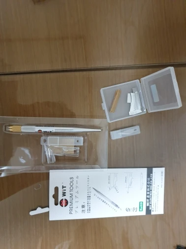 В комплекте "beige": 1. Блистер с W-901 - кроме ручки там пустая коробочка для лезвий, колпачок и одно лезвие в бумажке; 2. Набор лезвий #11; 3. Набор "ножей для удаления клея", из которых пара лопаток толщиной около 0.5 мм, остальные - от 0.05 до 0.1 мм, и еще одно лезвие в бумажке. Лезвия в держателе фиксируются достаточно надежно. Покупкой доволен.