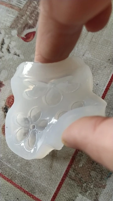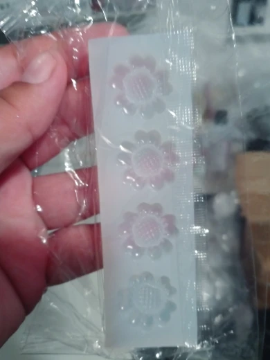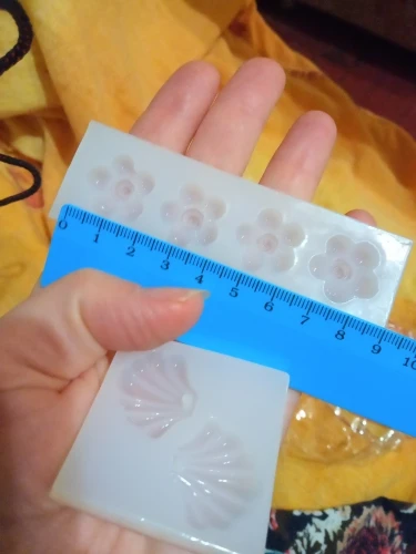 6 номер. Точно как на фото. Форма очень мягкая, по ощущениям липнет к рукам, по факту следов не оставляет. Цветочек будет 18*19 мм. Глубокая форма 1 см, и цветок где-то 7 мм в высоту будет. Смола ещё едет, так что буду пробовать позже. Приехало довольно быстро в большом сборном пакете от нескольких поставщиков Новой почтой в Днепр Украина.