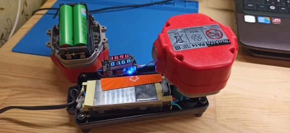 Собрал новый аккумулятор для шуруповерта. Изначально в нем был АКБ 14.4 Ni-Cd, стало 16.8 Li-Ion. Шурик марки "Total", модель CD006-14.4 BMC. В 2013 г. покупался по цене меньше 1000 руб. Люто работает!