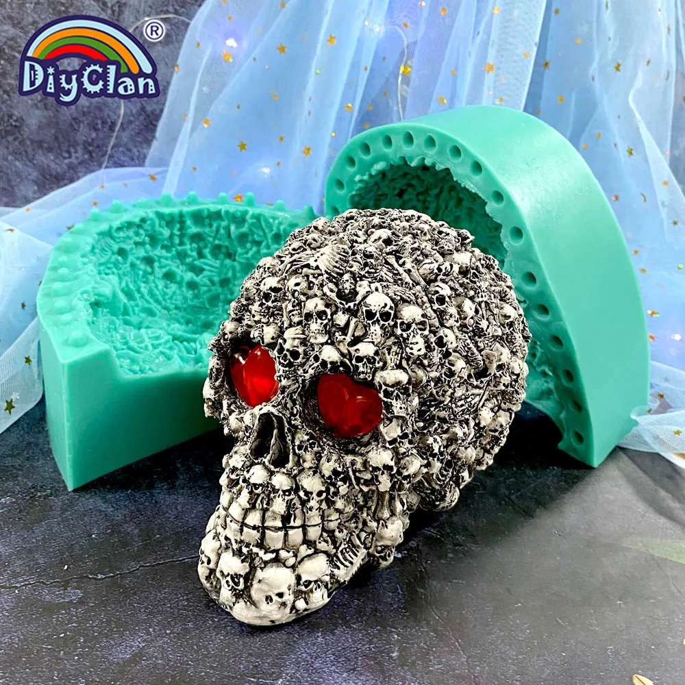 Большой Череп силиконовая форма для украшения гипса 3D Хэллоуин торт форма большой размер Череп Скелет ручной работы Смола свеча форма S0511