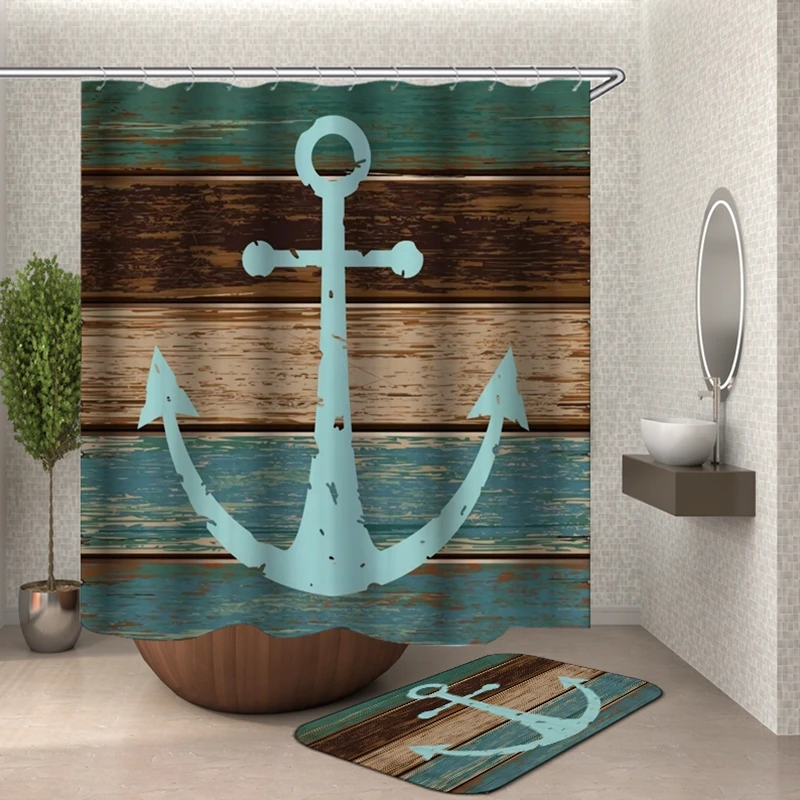 Винтажная занавеска для душа с якорем в деревенском стиле, складная...
