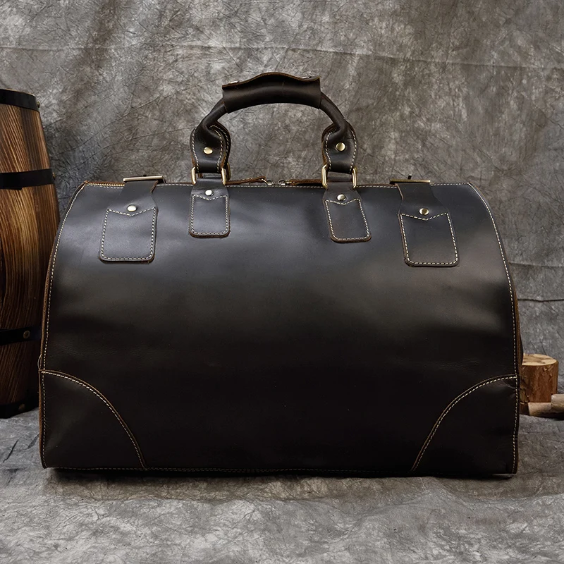 Дорожная сумка из кожи Крейзи Хорс для мужчин и женщин, вместительный ранец из воловьей кожи, чемоданчик для выходных, саквояж для путешествий, темно-коричневый