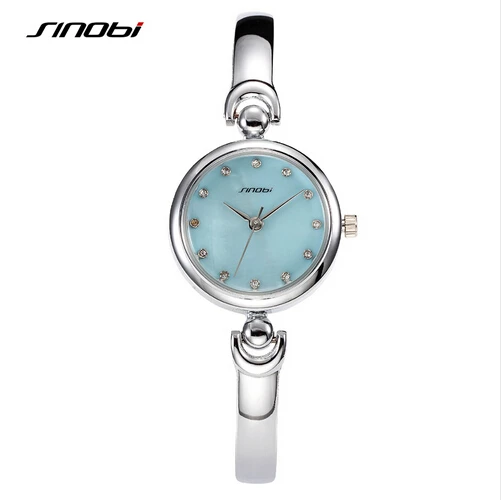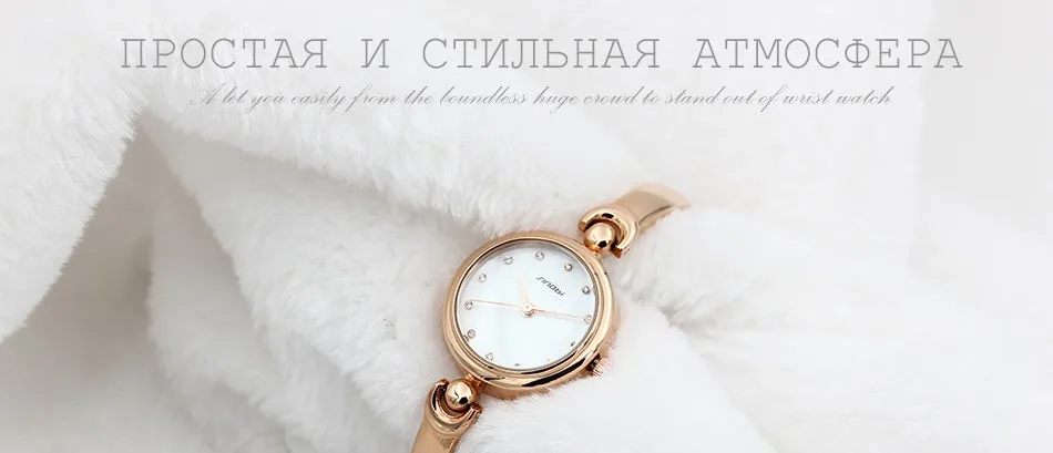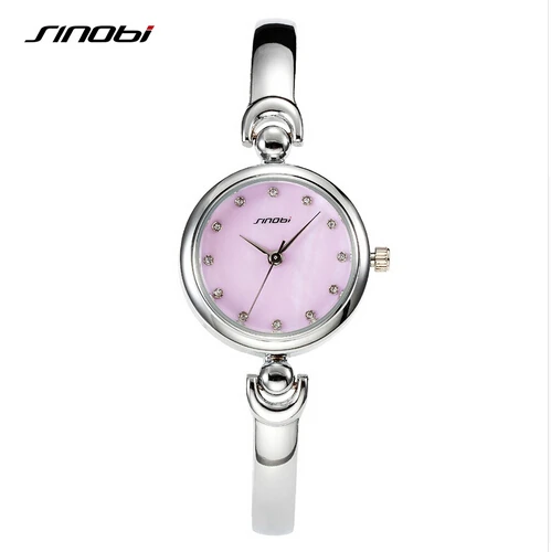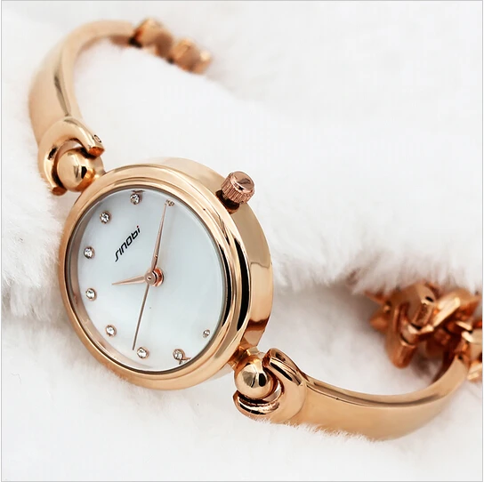Часы наручные SINOBI женские со стразами, роскошные часы-браслет из розового золота