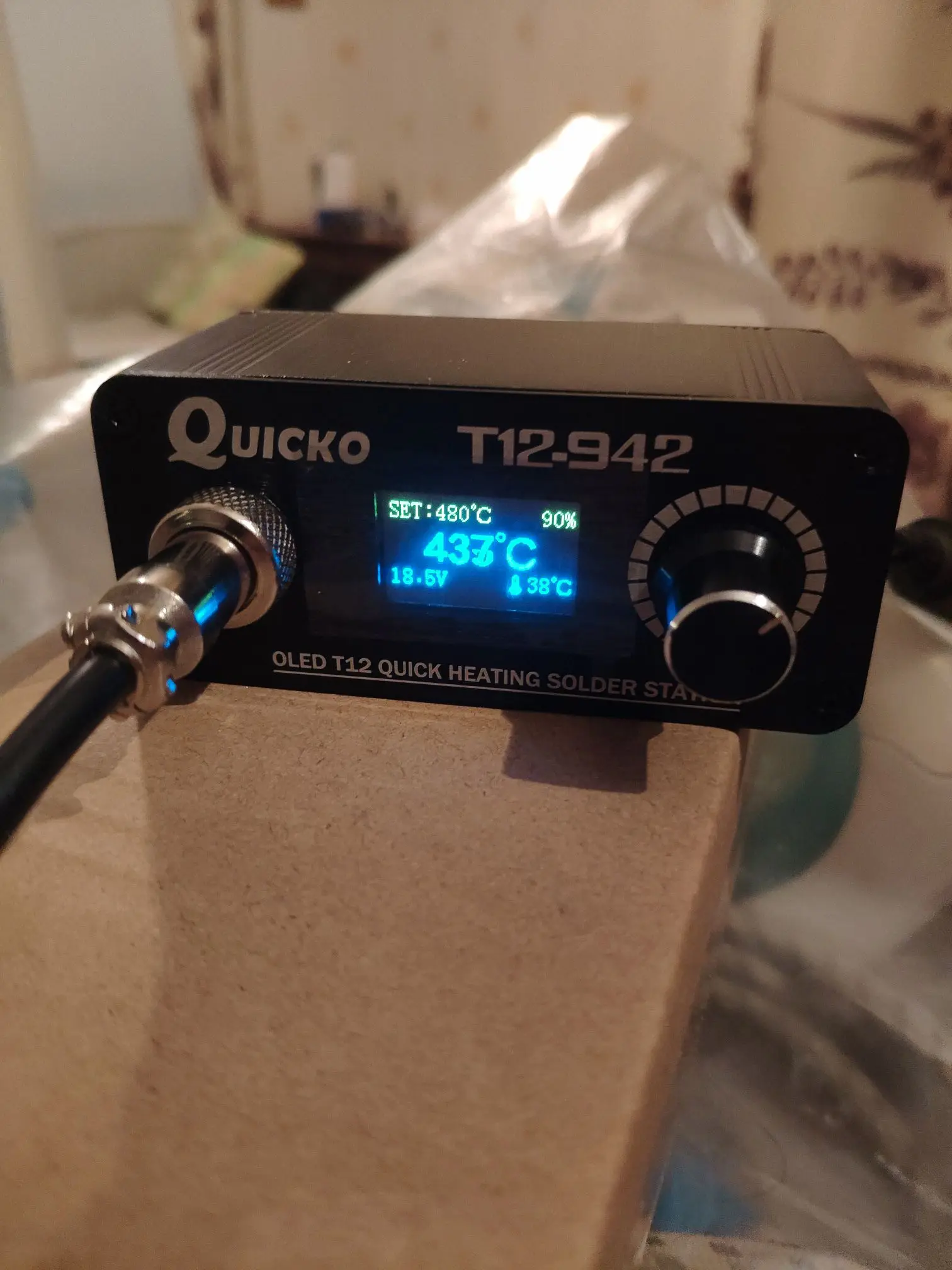 Хороший паяльник, быстро разогревается, все насадки рабочие. Так же очень удобная ручка и хороший провод в силиконовой изоляции. Кажется, что для пайки надо придерживаться правила "прибавить 50-60 градусов к тому, что на дисплее", потому что замеры говорят об этом. Прочитал в описании - они вроде как знают о проблеме, но не считают её проблемой, и как решение, предлагают либо не мерять температуру, либо мерять её специальной станцией для паяльников (ага, у меня их много дома) и вообще советуют не покупать если уж прям по температуре хочется точности. Тем не менее, я лично считаю цена/качество очень привлекательными, так что рекомендую всем нищебродам электронщикам