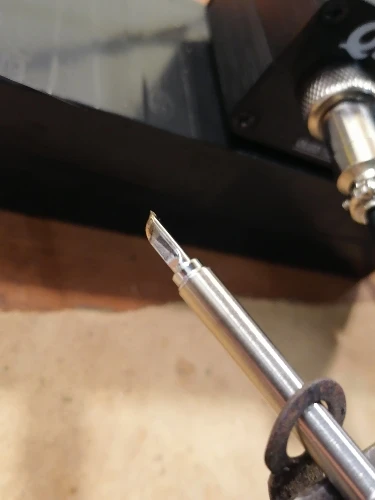 пришёл с К жалом- оно очень острое, прям как нож, не знаю привыкну ли... царапает плату, сдирает маску когда безсвинцовый припой замешиваю с пос61, хотя и так нормально берёт безсвинец, даже не на максимальной температуре(480 у меня максималку показывает). долго обгорало, ну вначале типа скакала температура -+50 градусов, термопара в новом жале видимо неверно работает, но минут чер 20 стабилизировалось. так ваще гораааздо мощнее ts-100, по крайней мере на стандартной прошивке, но картриджи жала однозначно надёжнее. Балашиха дошло за 3 дня, забирал в вшивой пятёрочке(пол часа чёт там искали тупили).