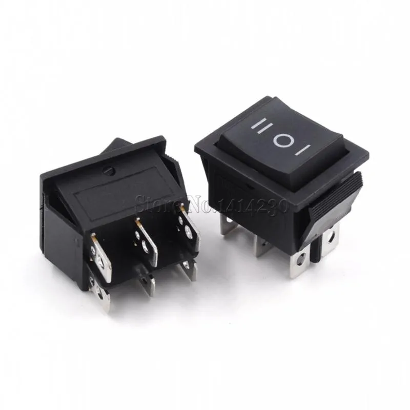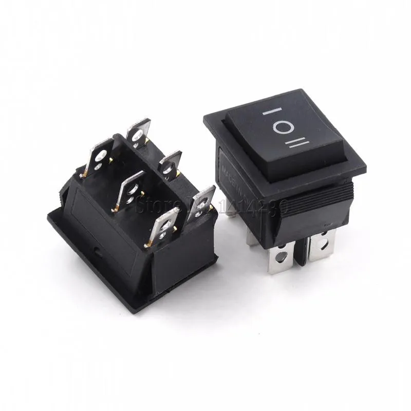10 шт., флейта 25x31 мм, 6 контактов, 3 положения, 16 А, 250 В, 20 А, В переменного тока, ВКЛ.ВЫКЛ., SPDT, черный большой клавишный переключатель