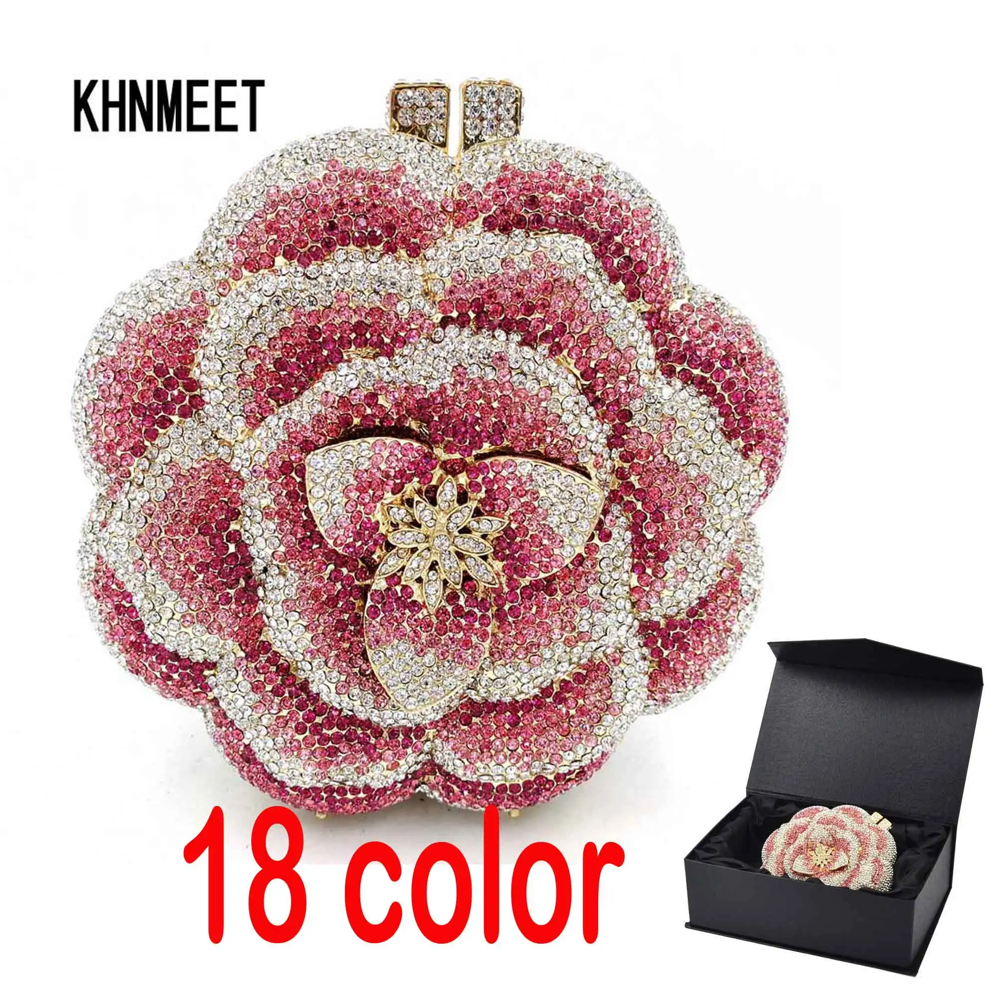 Новейший клатч с розовыми кристаллами для женщин, Свадебный Цветочный кошелек, клатч на цепочке для невесты, вечерняя сумочка для выпускного вечера, SC603