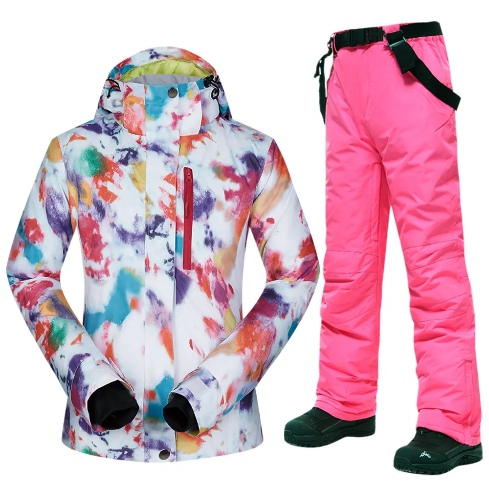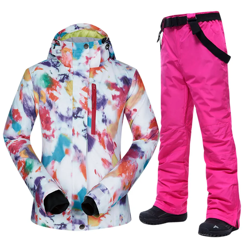 Лыжный костюм для женщин, брендовая зимняя водонепроницаемая ветрозащитная спортивная одежда, женская зимняя Лыжная куртка и штаны, зимний комплект с ремнем, костюмы для сноуборда