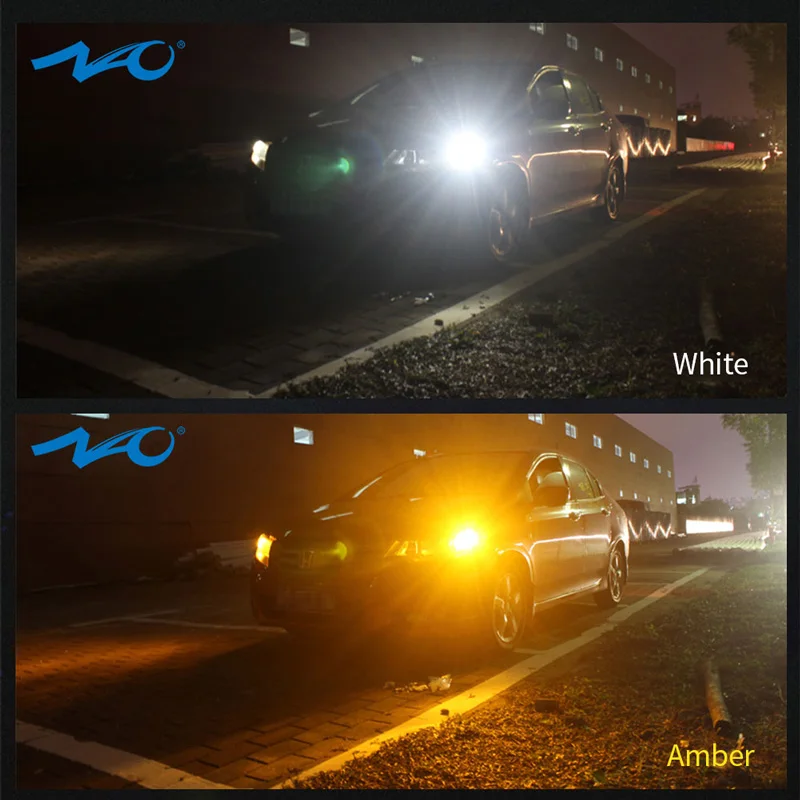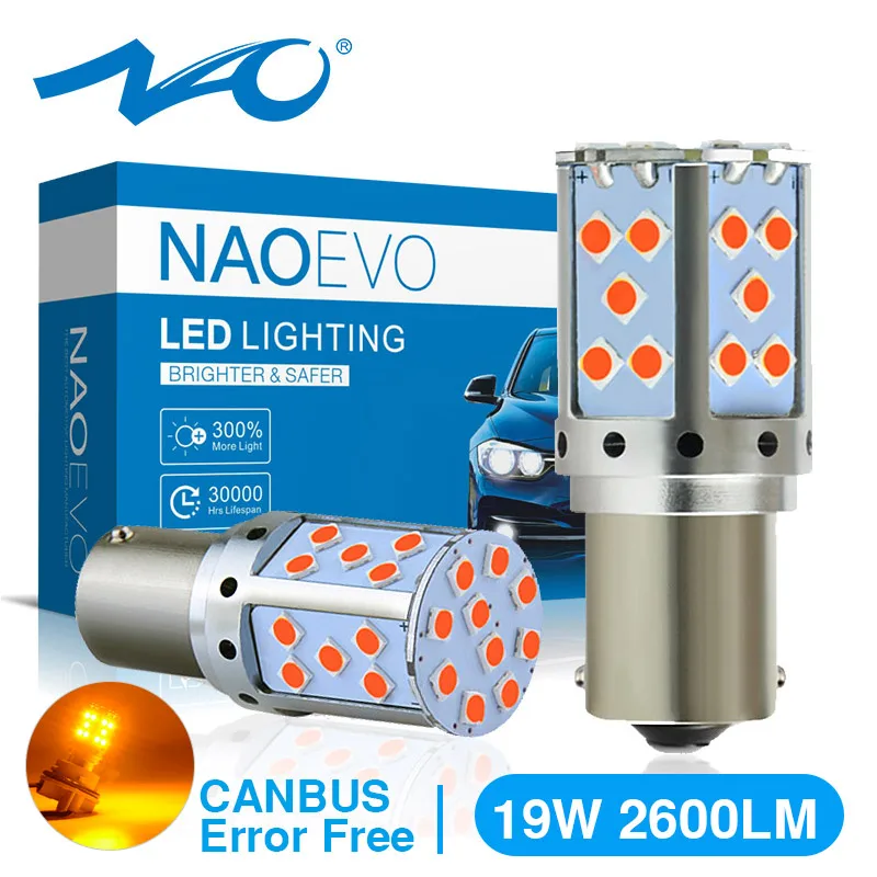 Светодиодсветильник автолампа NAO PY21W Canbus, без гипервспышки, 19 Вт, 2600Lm, P21W, BA15S, BAU15S, 1156, 3030, янтарно-белая, ДХО, автосигнальная лампа