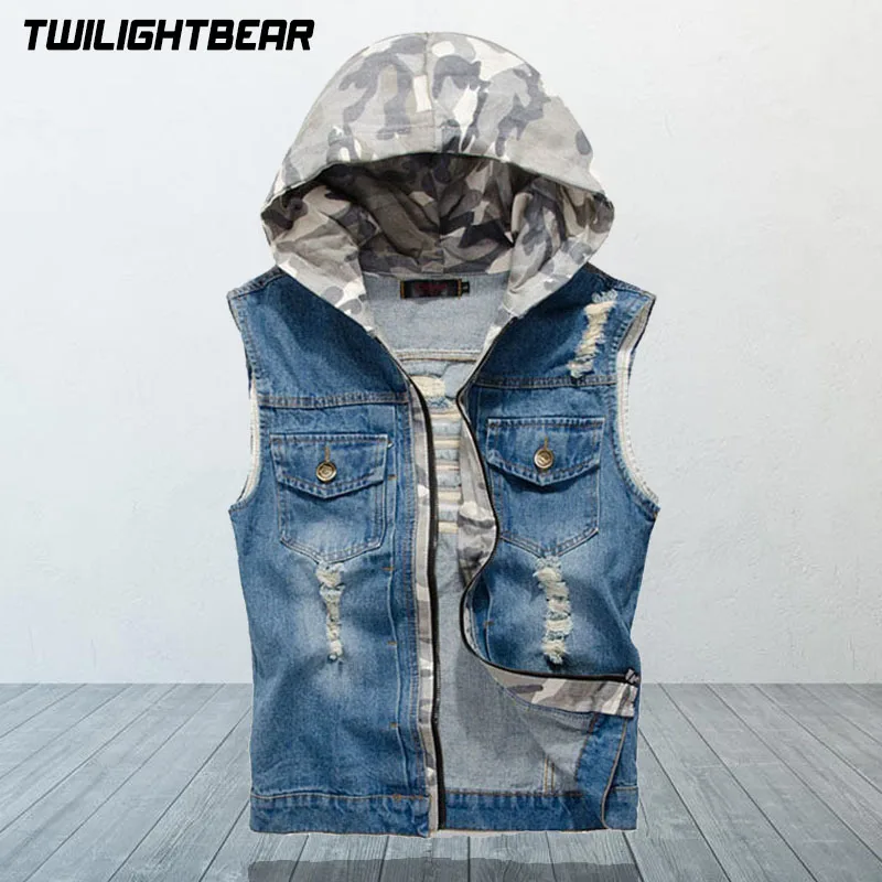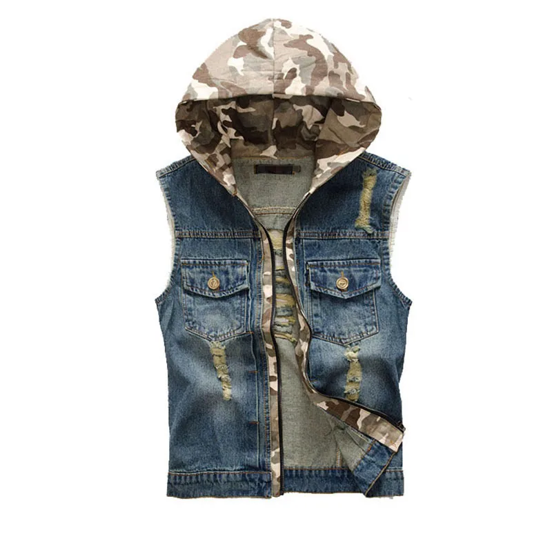 Новинка, мужской джинсовый жилет, мужская куртка без рукавов, пальто, винтажный Ретро стиль, с капюшоном, высокое качество, повседневный жилет, мужская одежда AE805