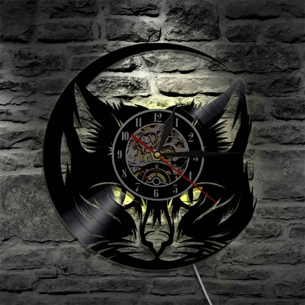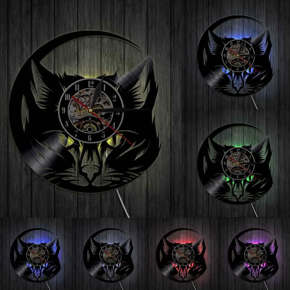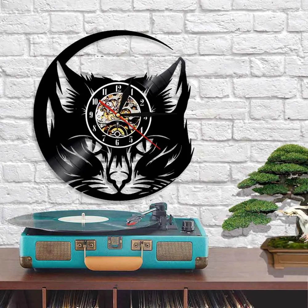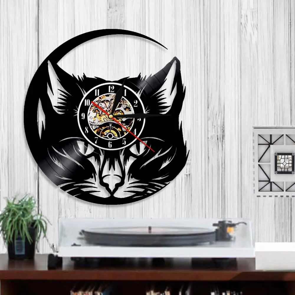 Настенные часы Meow с изображением кошачьей головы, Виниловая пластинка LP, граммофон, музыкальная пластинка, часы для котят, домашних животных, клиника, альбом для украшения кошек